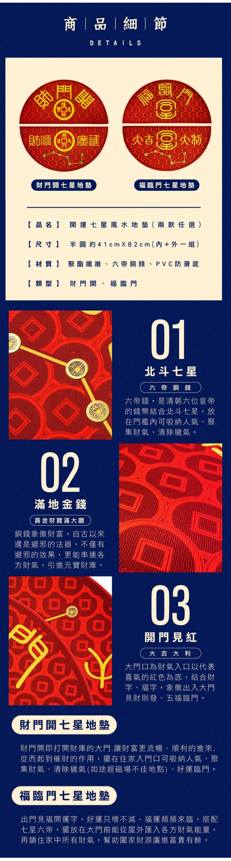 【財神小舖】七星風水地墊-半圓(內+外一組)-兩款可選