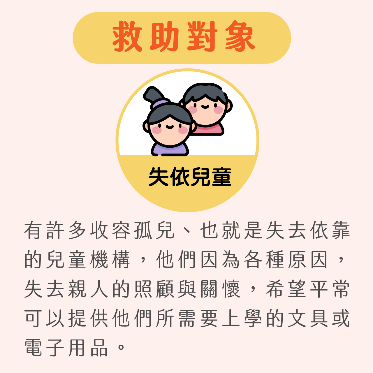 此次募集的目標為孤兒院