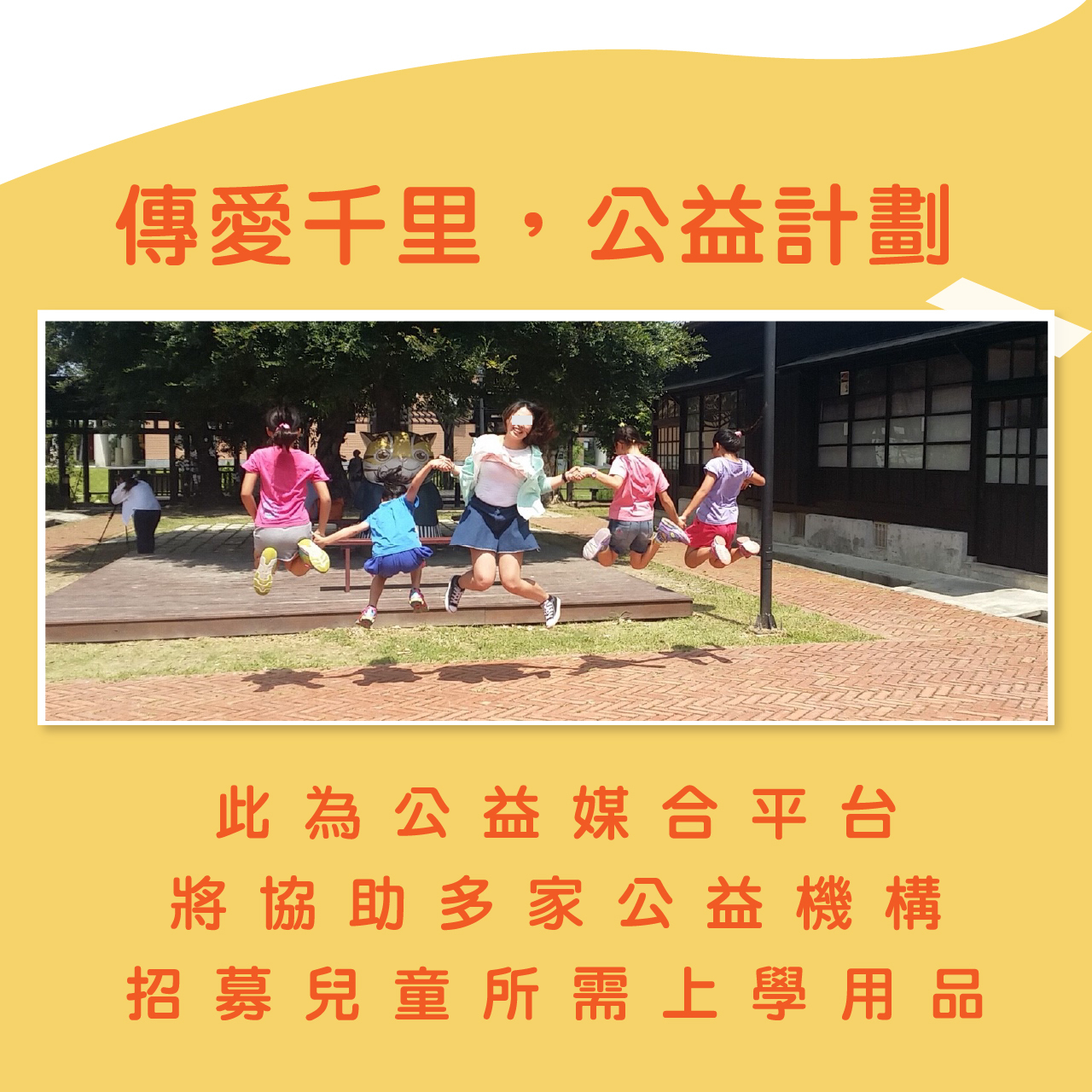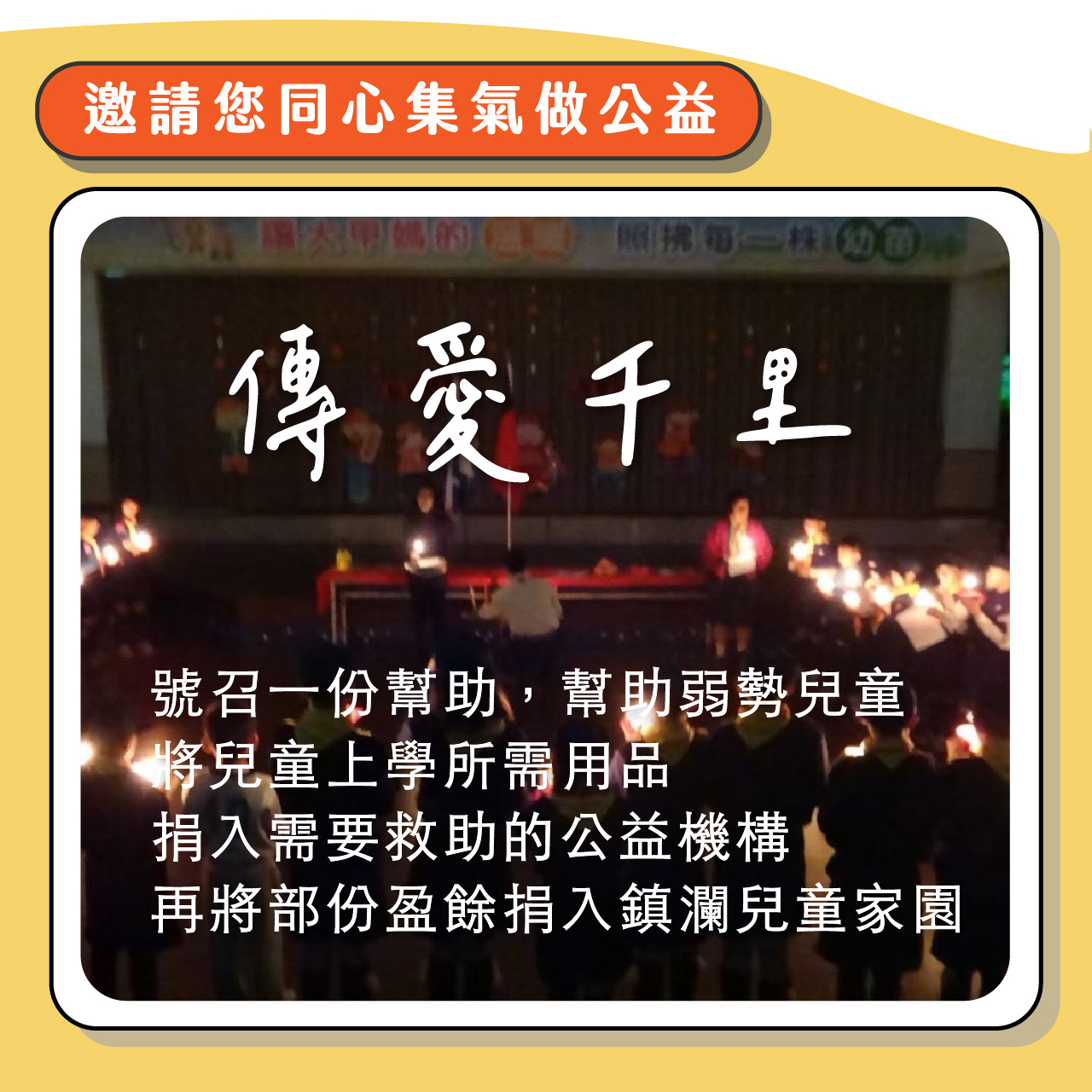 傳愛千里、號召善心人士一同響應