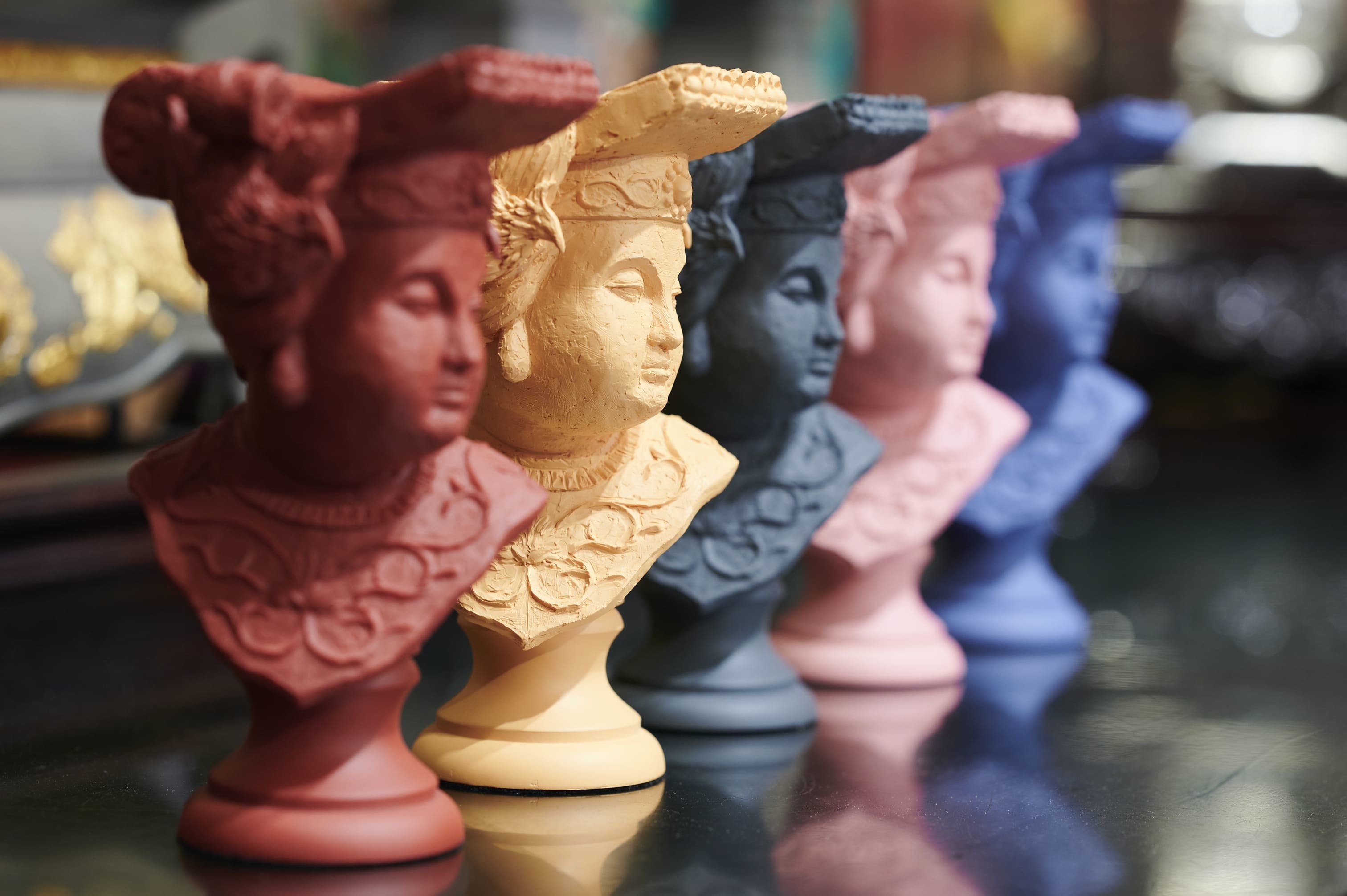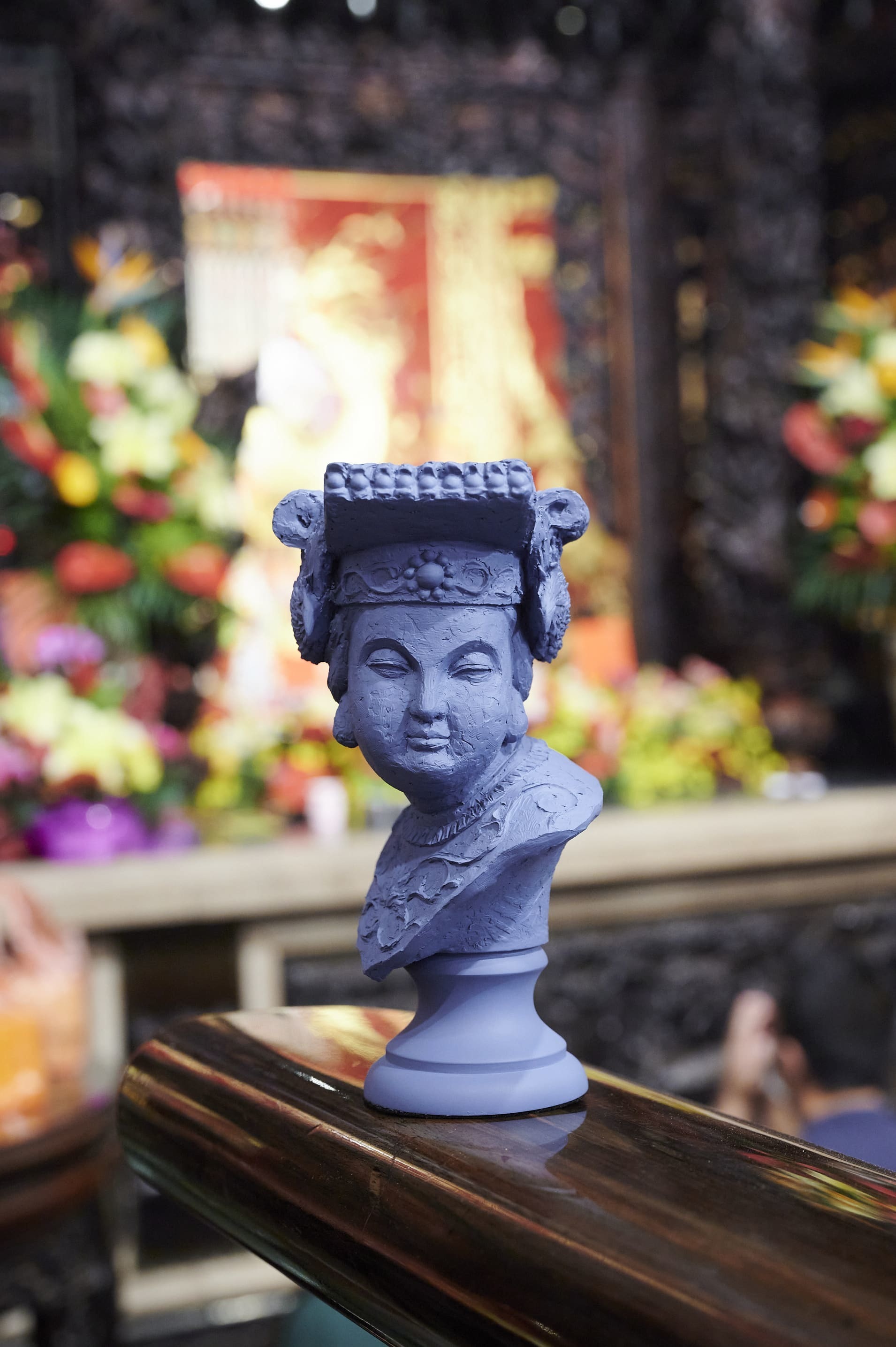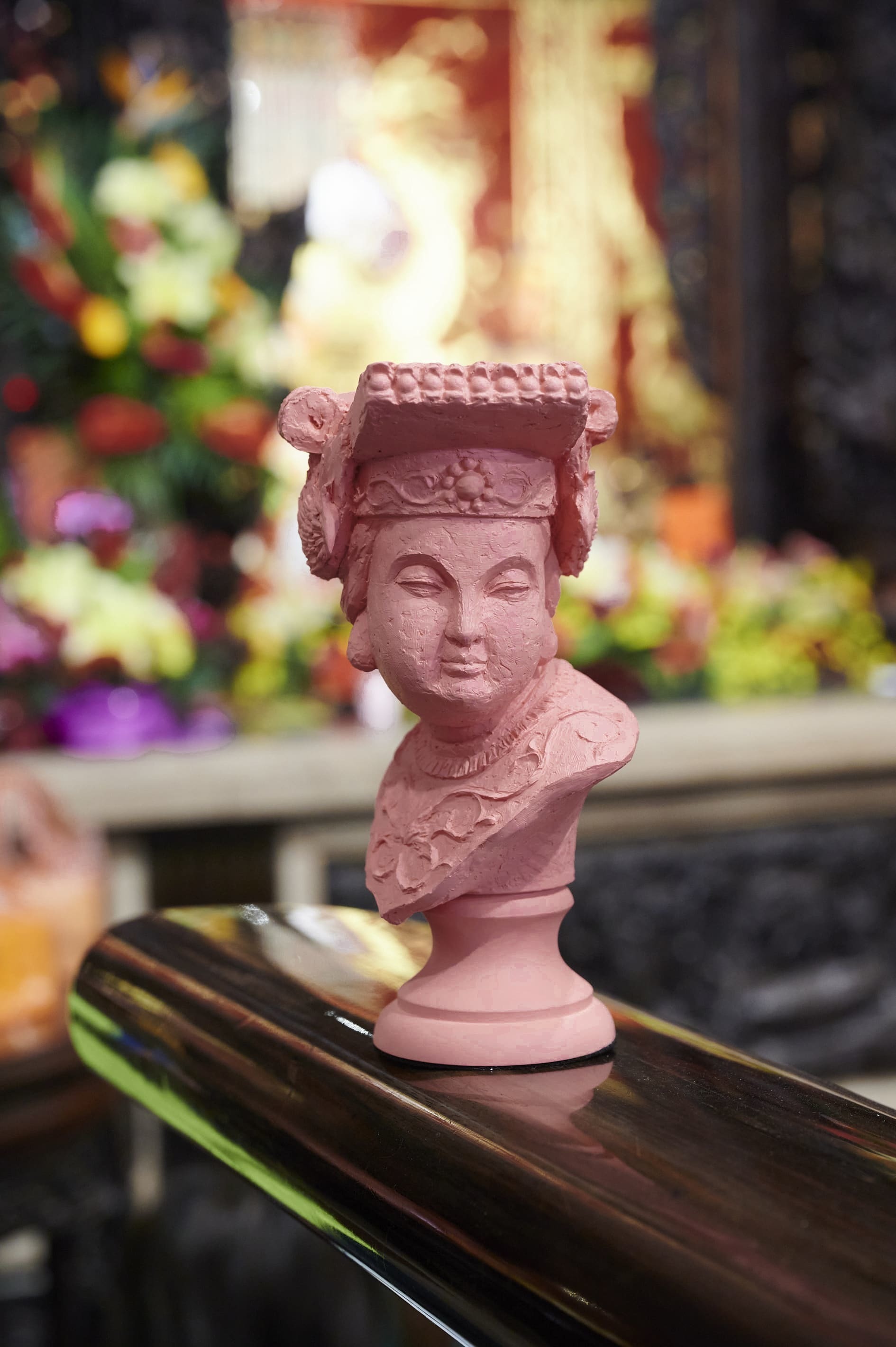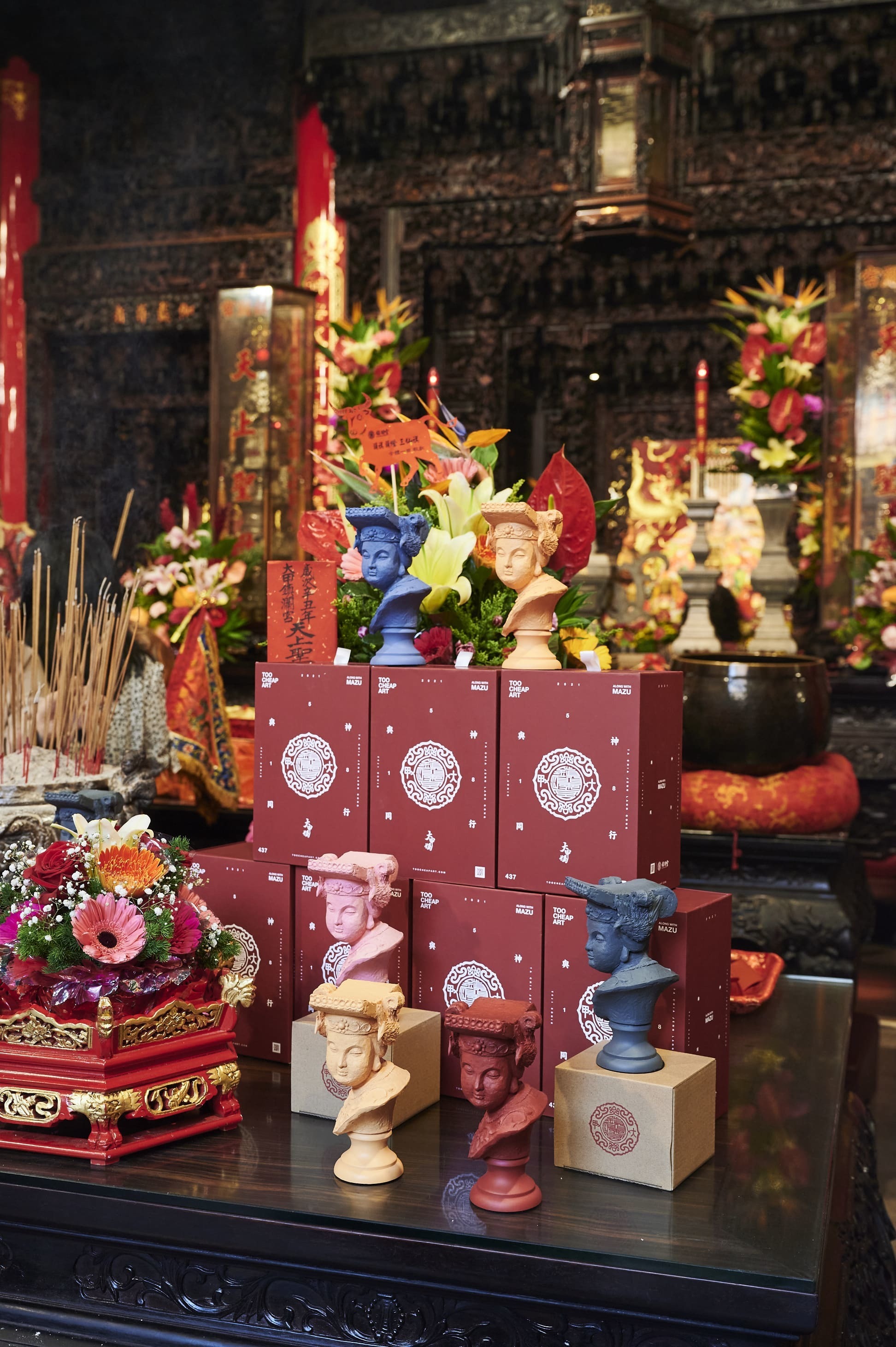大甲鎮瀾宮媽祖雕像「與神同行」,將中西方元素融合,以傳統文化作為基礎,將大甲媽祖以西方石膏像的手法呈現,配色上則跳脫傳統神像,選用適合各式空間擺飾的色系。透過簡單的組合,你也能搭配出屬於你的居家氛圍!