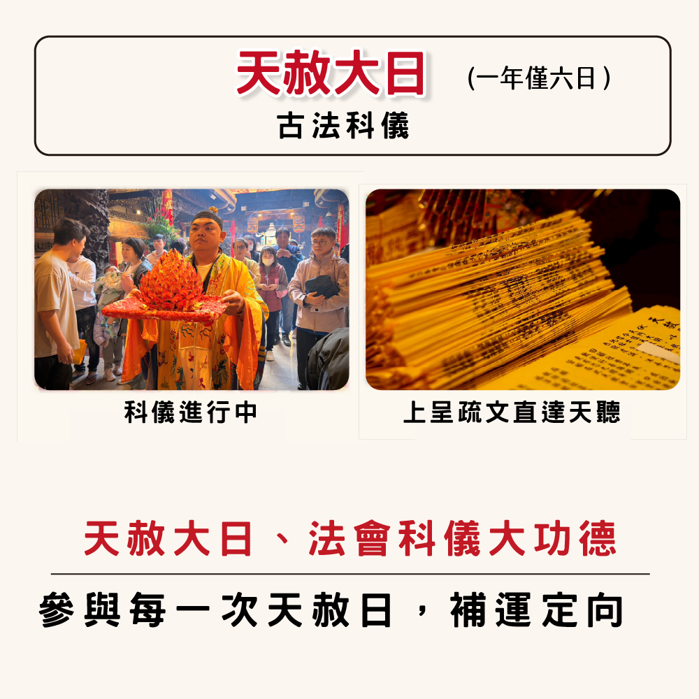 法器即日起開始依訂單順序先行寄送,由法師先行開光及過爐加持,金紙則於天赦日燒化