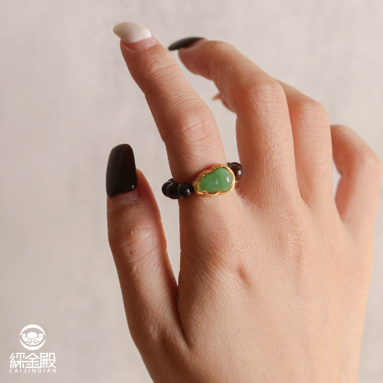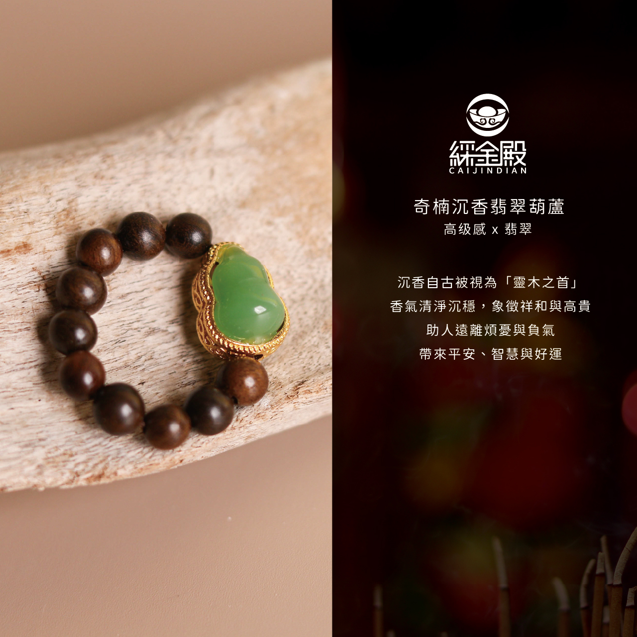 翡翠葫蘆沉香木戒|安定心神|淨化能量|活戒圍|過爐加持【綵金殿】