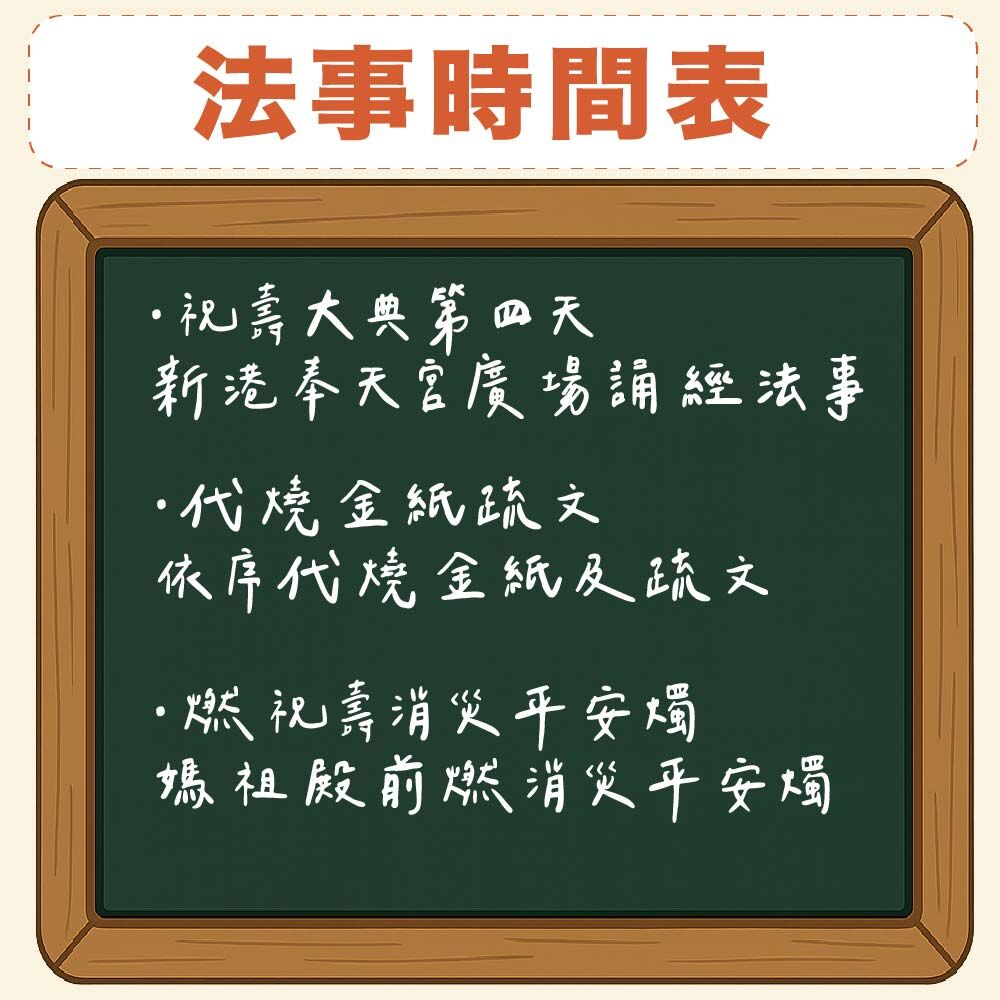 祝壽大典於遶境第4日早上7時於新港奉天宮舉行