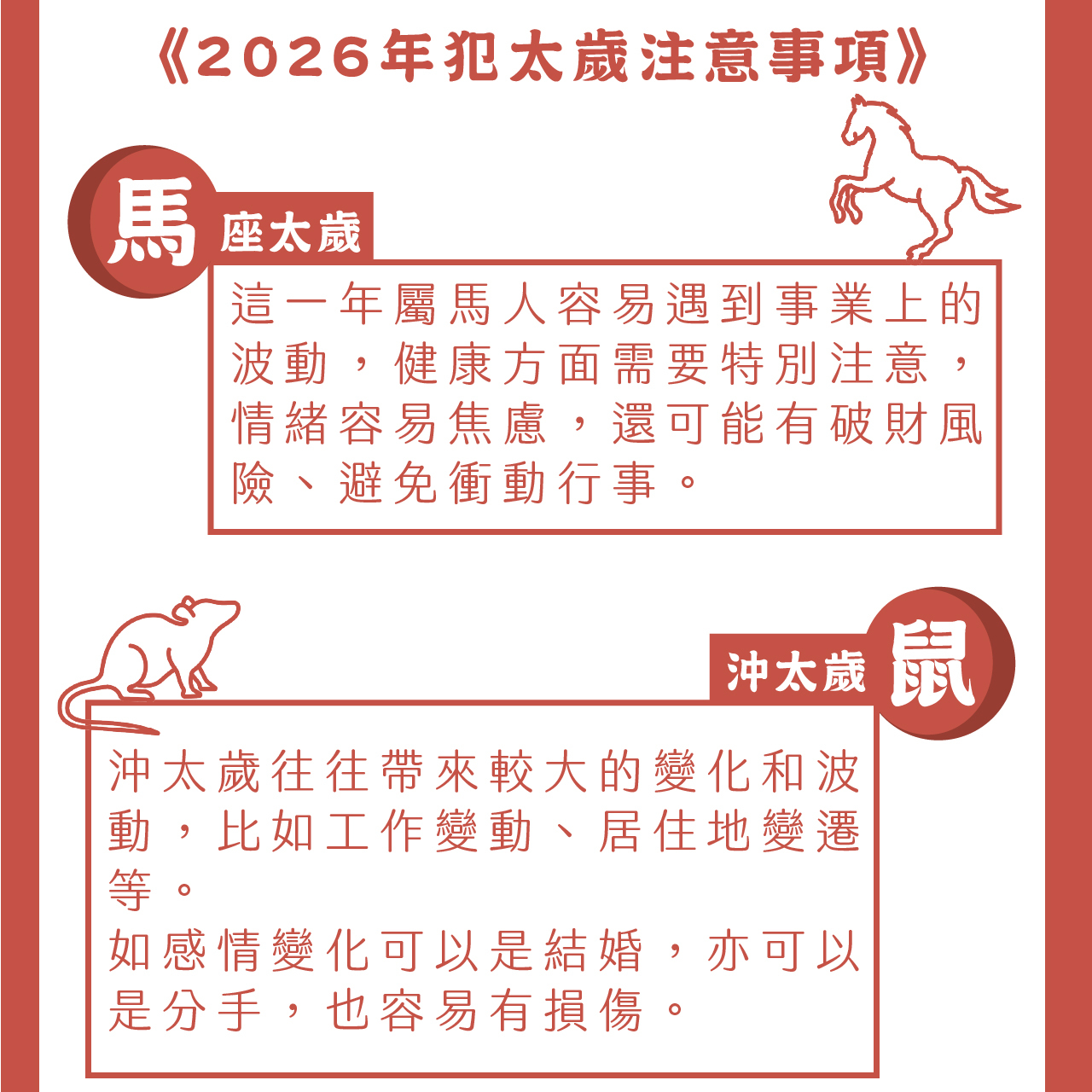 2026年犯太歲生肖【馬、鼠、牛、兔】