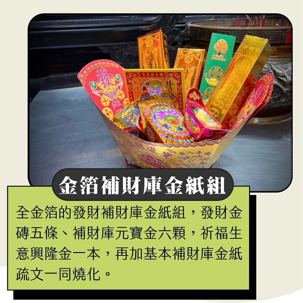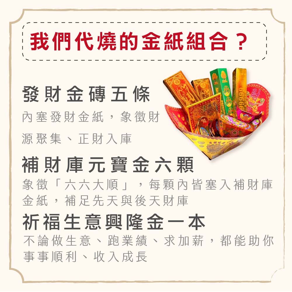 3.代燒大補財庫金紙(含特製全金箔金紙一大份)