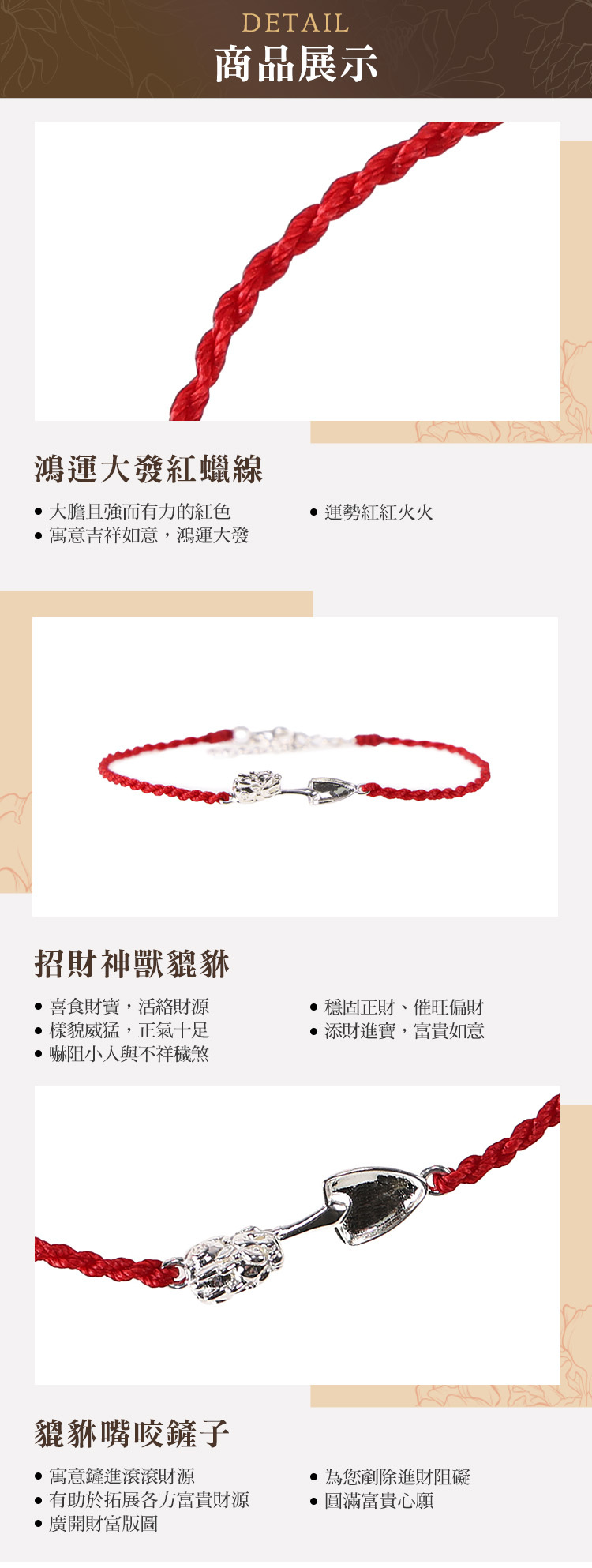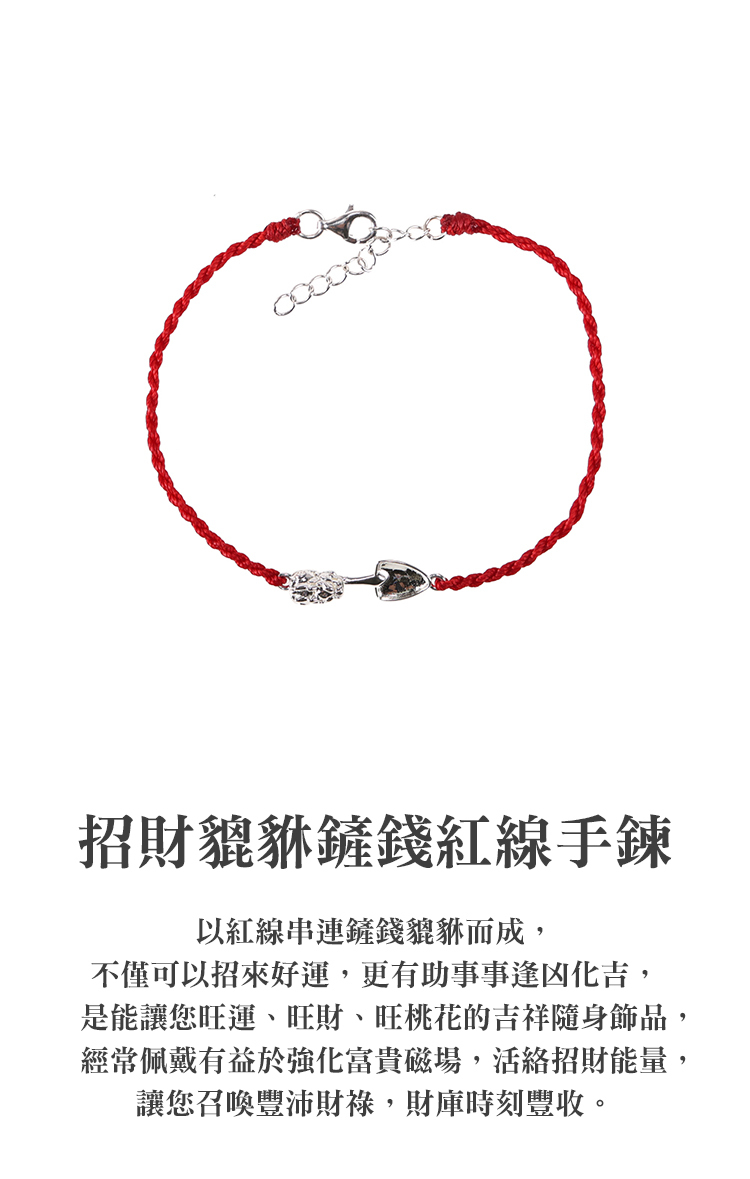 【風水好好玩】招財貔貅鏟錢紅線手鍊 (事業運/招財/辟邪護身)