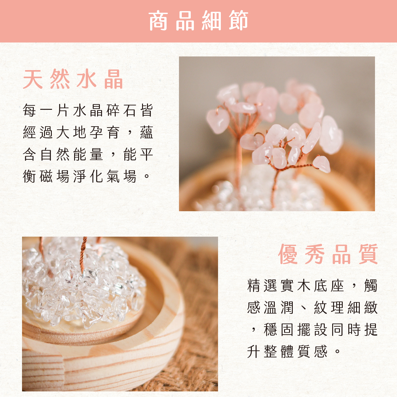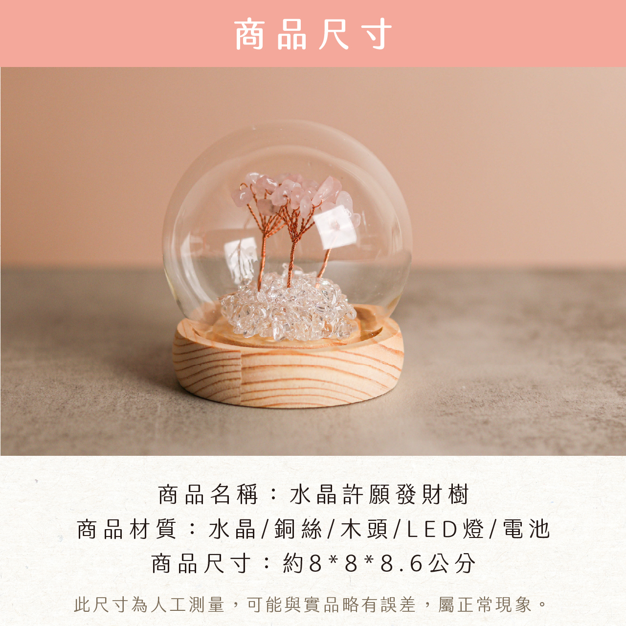 | 材質 | 水晶、銅絲、木頭、LED燈、電池 |