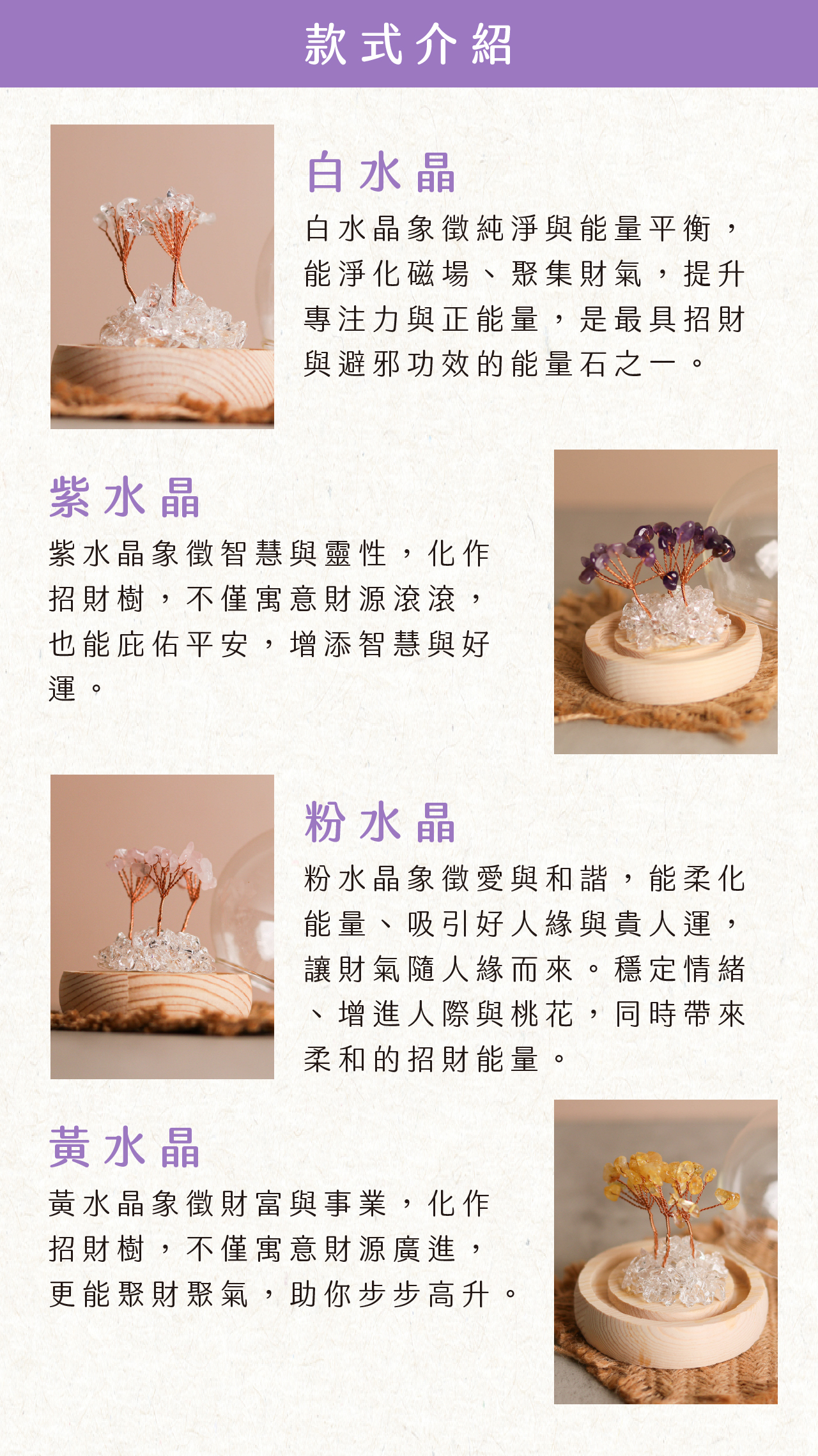 | 材質 | 水晶、銅絲、木頭、LED燈、電池 |