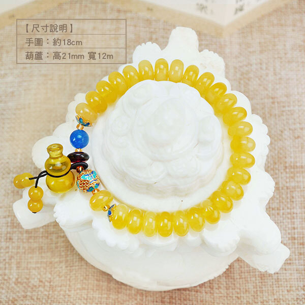 尺寸:手圍約18cm,珠子10mm厚6mm,葫蘆高21mm寬12mm