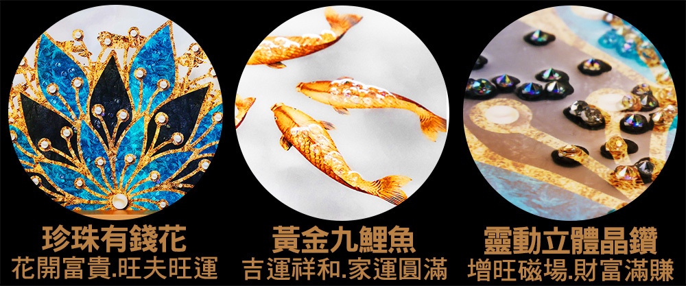 ◆3D立體晶鑽+珍珠圖+水晶入畫=生財貴氣