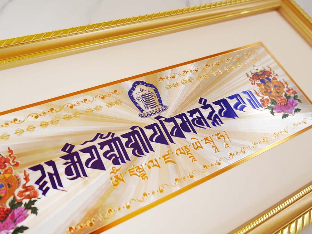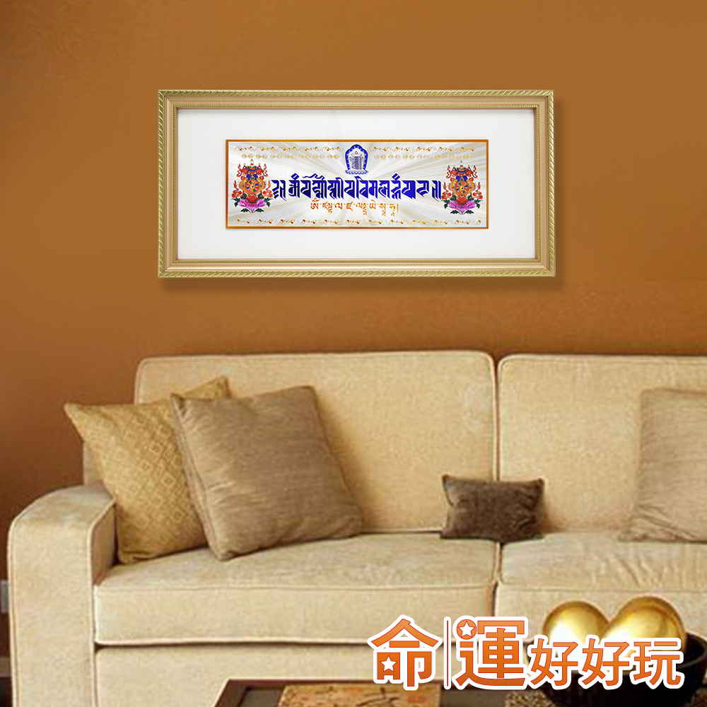 除障引財過門咒掛件-錶框x1幅:表面壓克力板、三角形鐵吊畫勾、木框。長38cm高18cm,厚1.5cm。