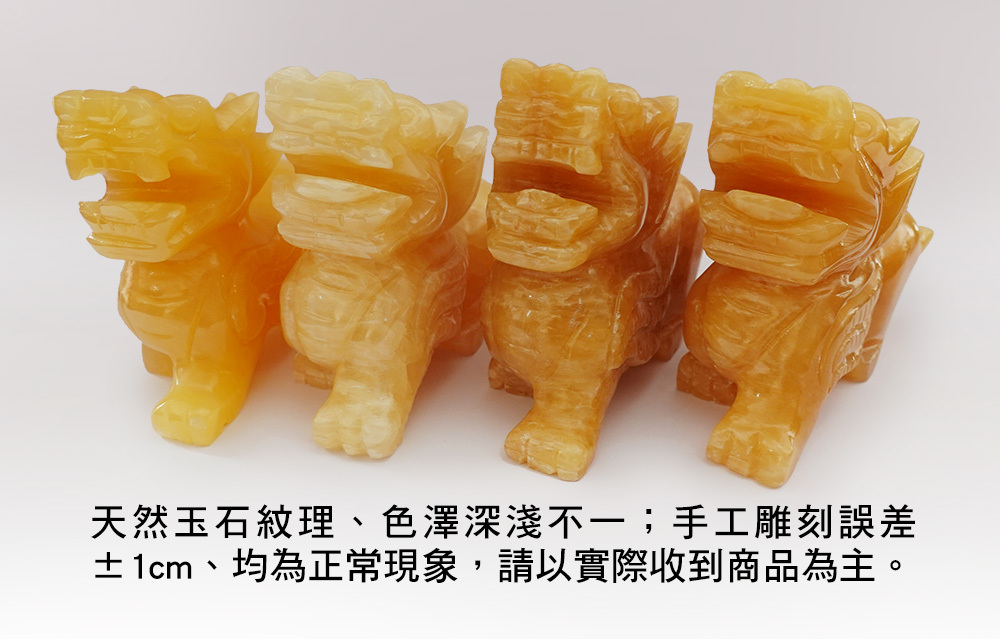 財富制霸黃玉貔貅擺鎮X1對:天然黃玉。長5cm、寬12cm、高9cm。