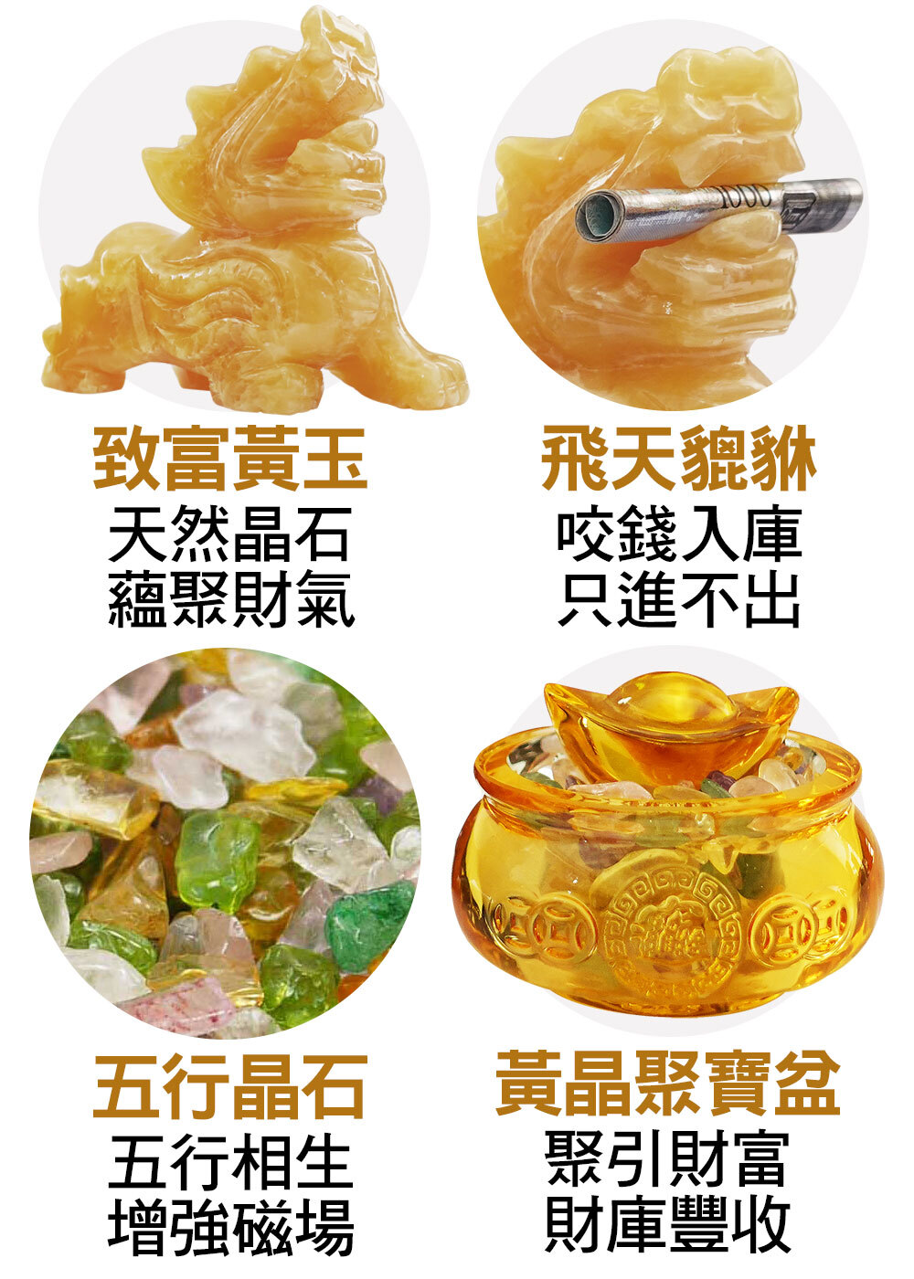 ◆黃晶聚寶盆供養貔貅,增強磁場