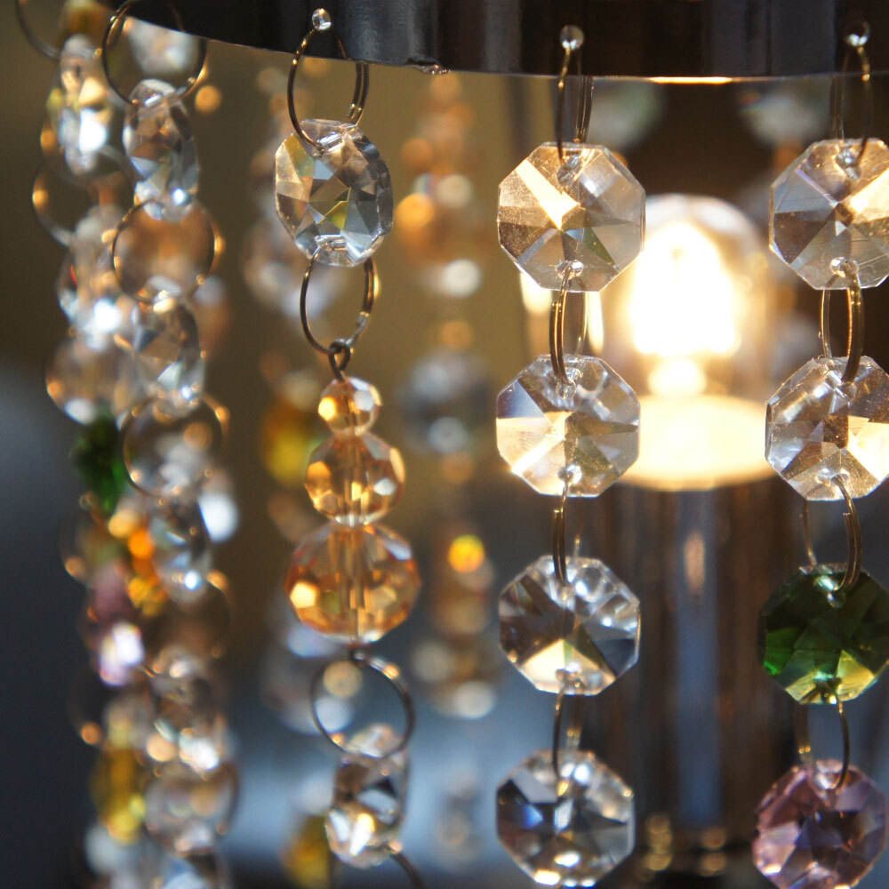 人造水晶玻璃、不鏽鋼圈、壓克力珠。長19cm。
