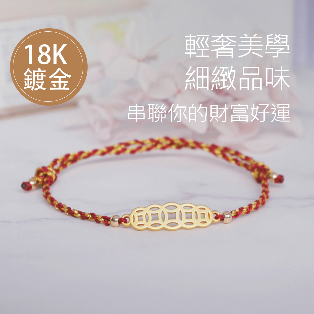 編織繩、鍍18K金、鍍14K包金珠。手圍約16~23CM。