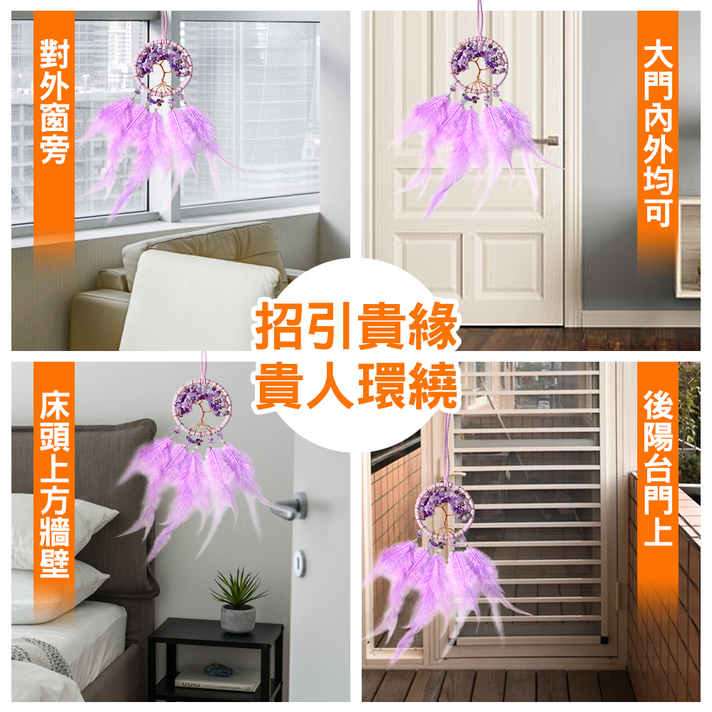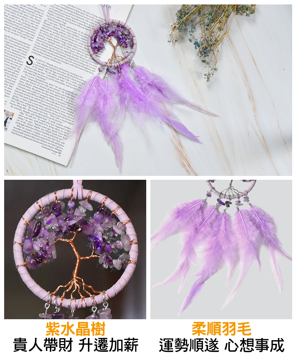 ◆招貴人紫晶樹X天然好運羽毛→金緣帶財