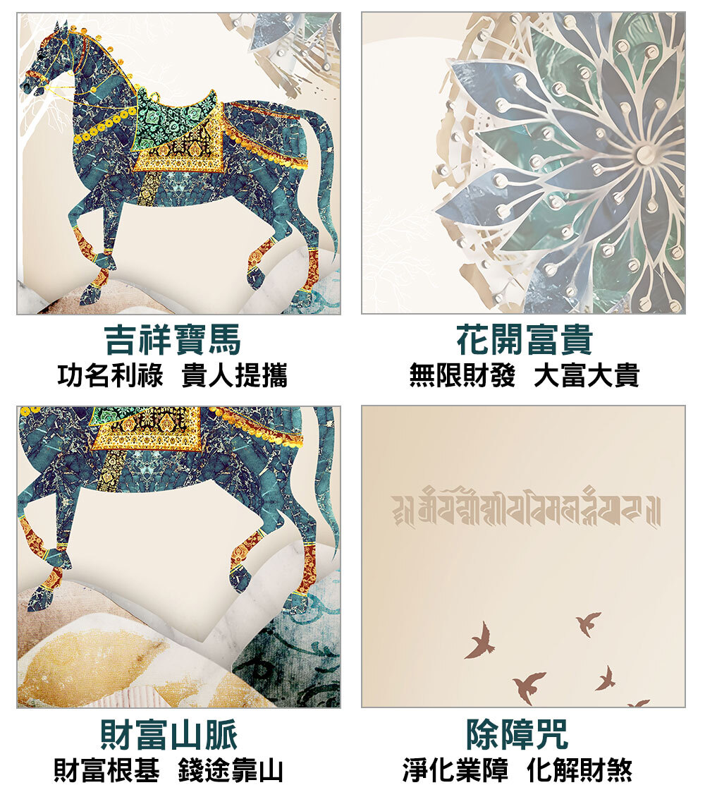 主圖瑞獸寶馬,寓意開拓事業財路功名利祿