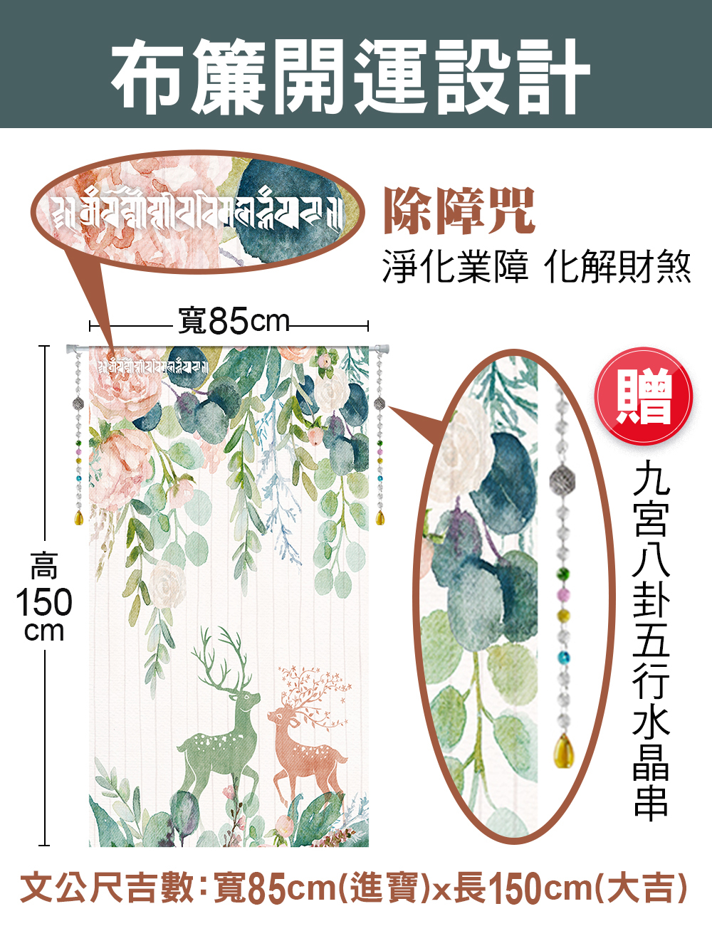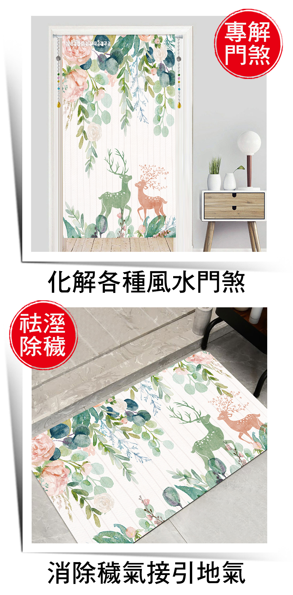 【命運好好玩】雙鹿呈祥風水布簾+硅藻地墊組 (廠商直出)