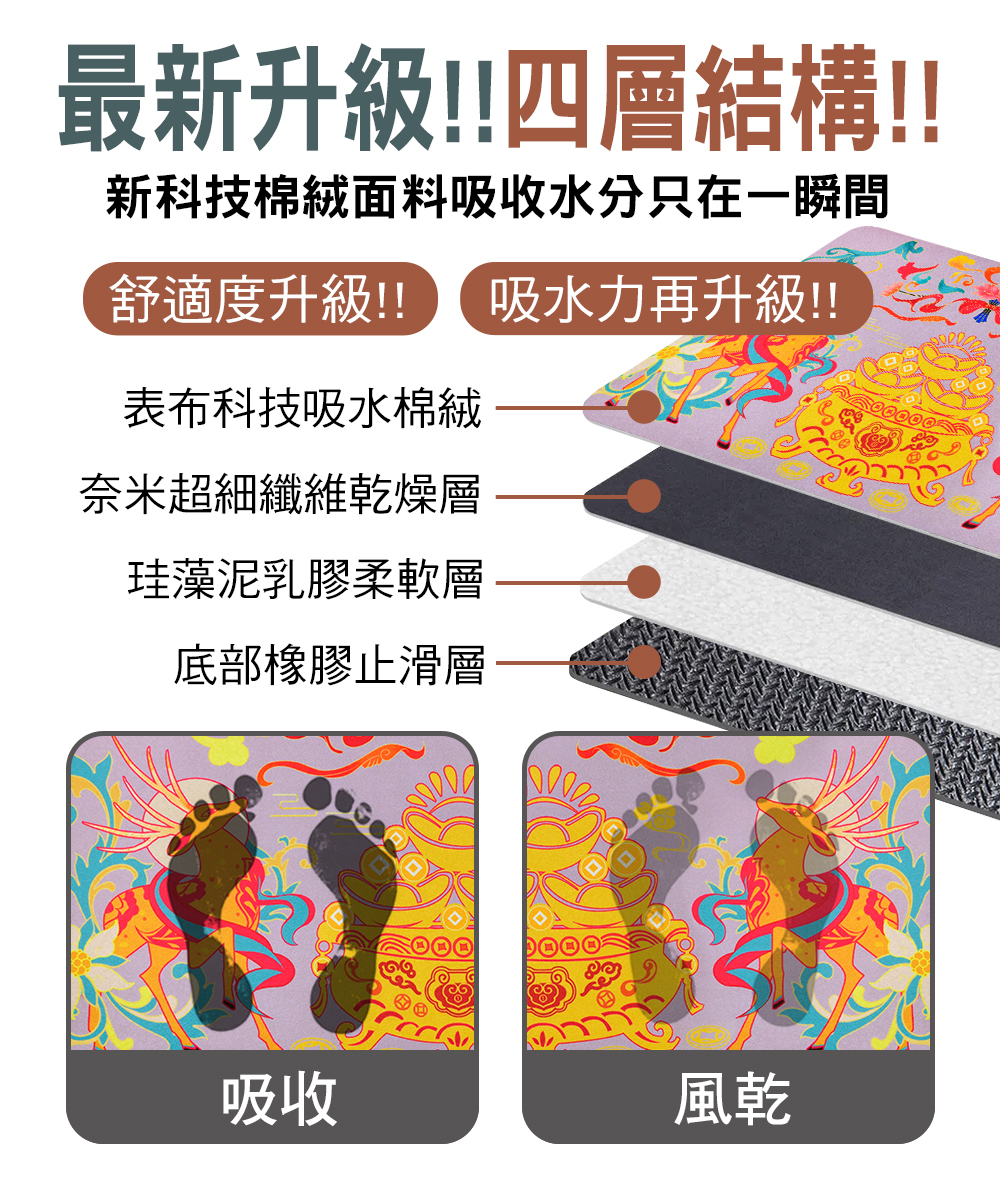 ◆升級版硅藻土地墊-超強吸水,祛濕除穢