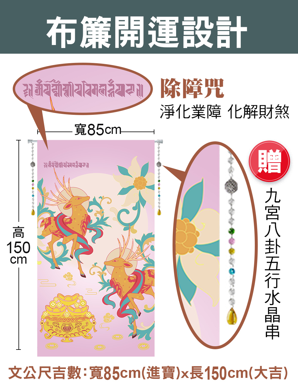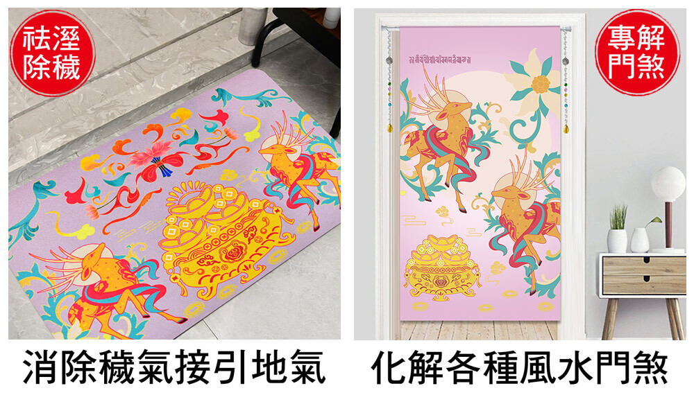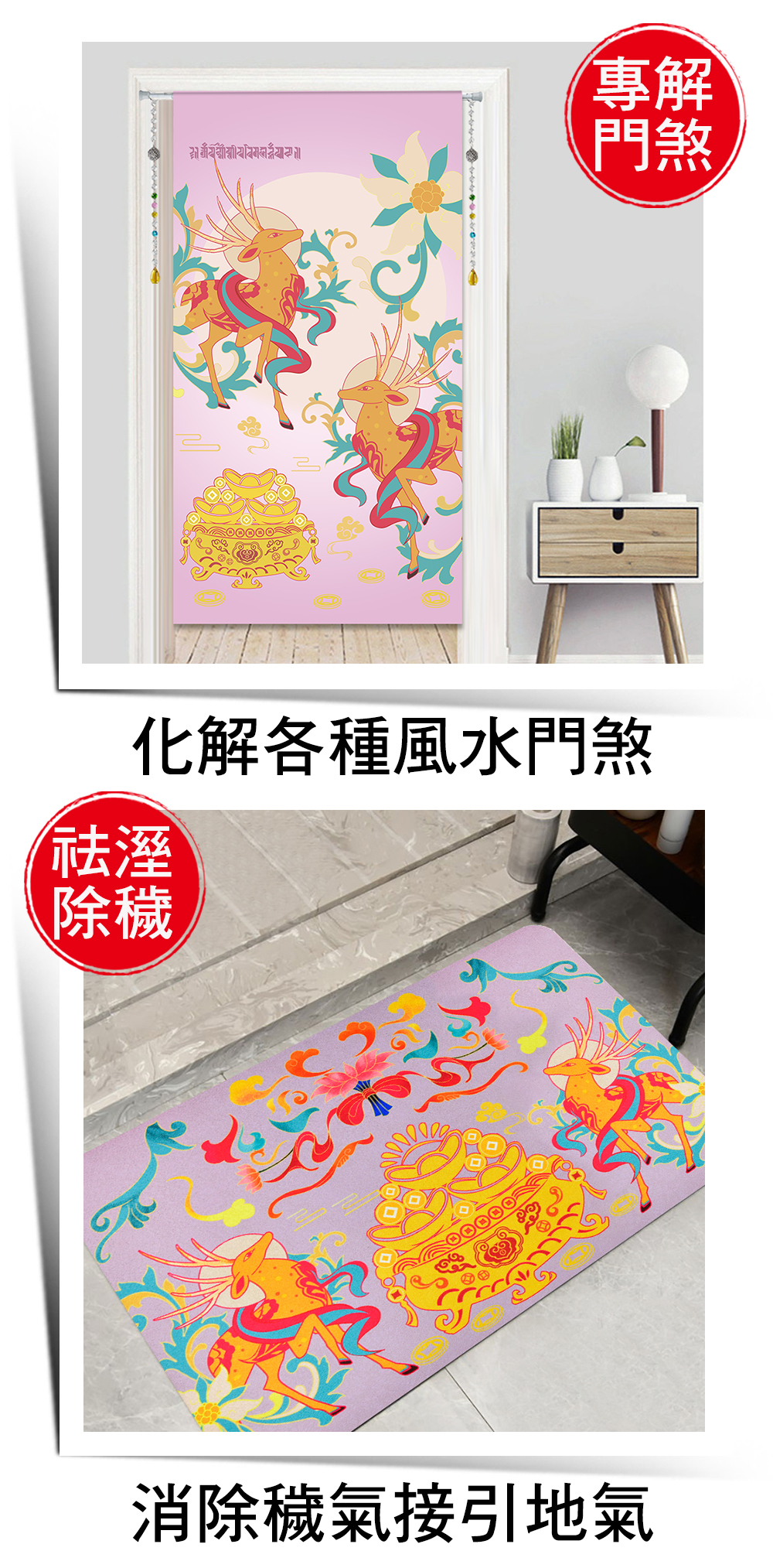 【命運好好玩】紫氣東來財鹿風水布簾+硅藻地墊組 (廠商直出)