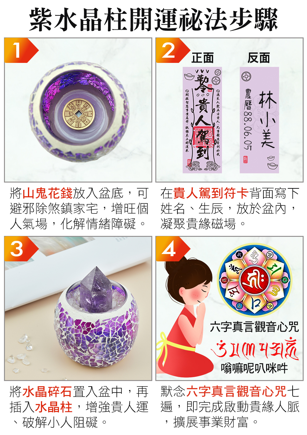 ◆「紫晶柱」開拓貴人圈,提升事業財富