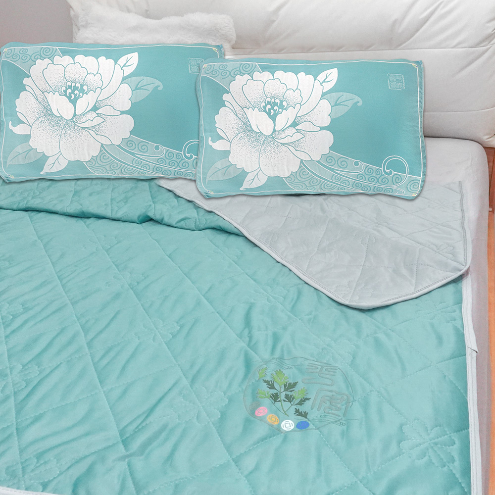 【命運好好玩】艾草冰涼被+牡丹枕巾2入 (廠商直出)