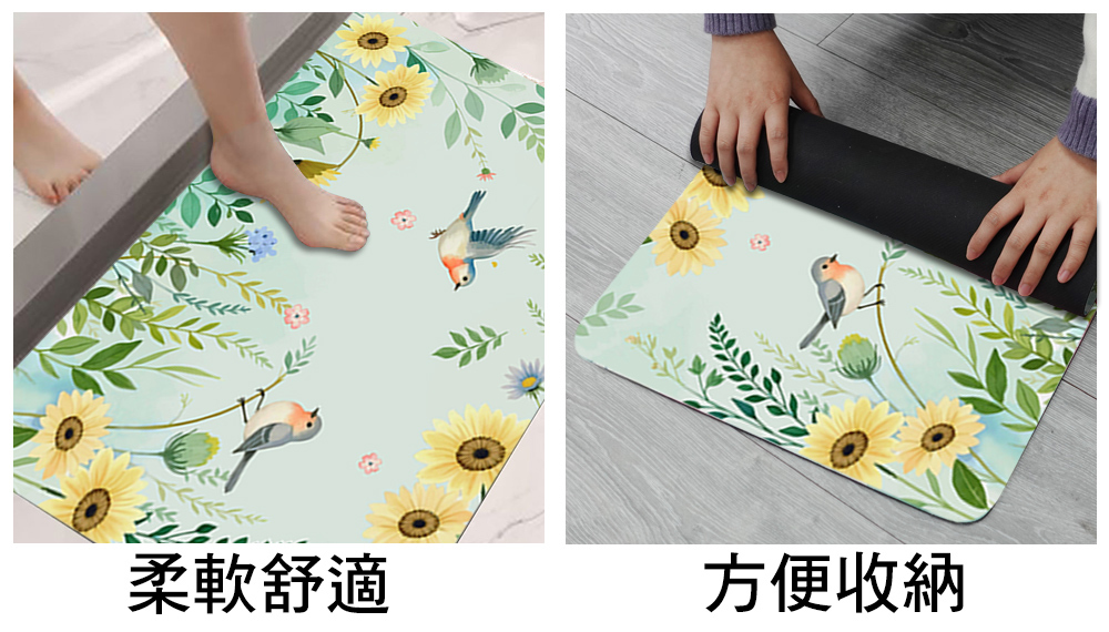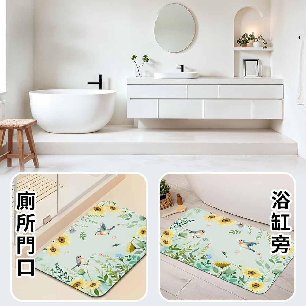 扶搖報喜鵲硅藻土地墊x2入 燙金科技布+仿棉绒+硅藻土橡膠軟墊。