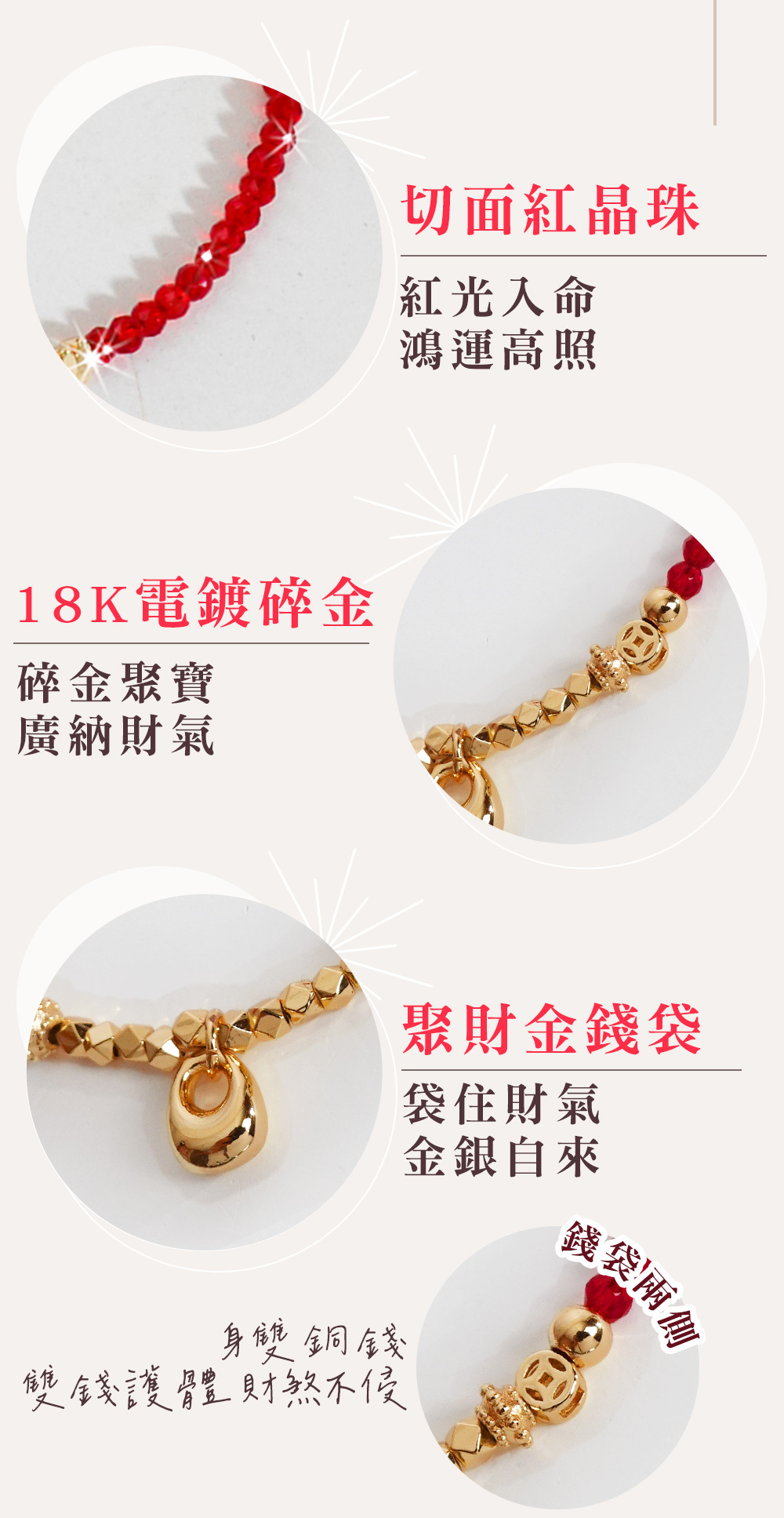 【命運好好玩】錢袋子紅晶線手鍊 (廠商直出、不參加免運及滿額贈優惠)