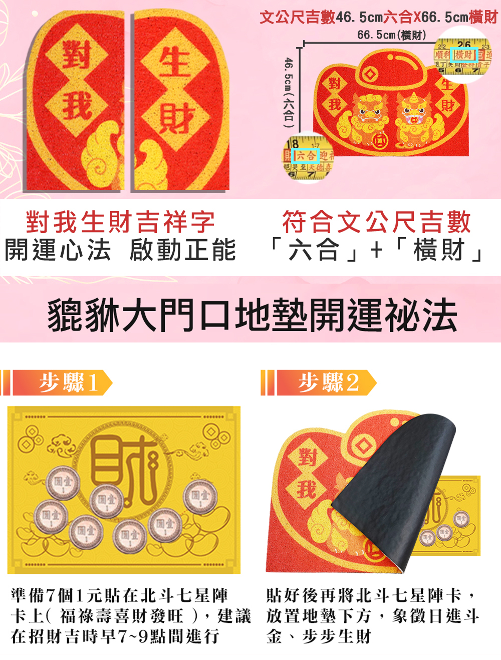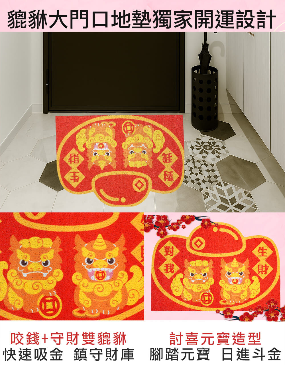 對我生財貔貅紅地墊x2入 PVC。長46.5cm*寬66.5cm。