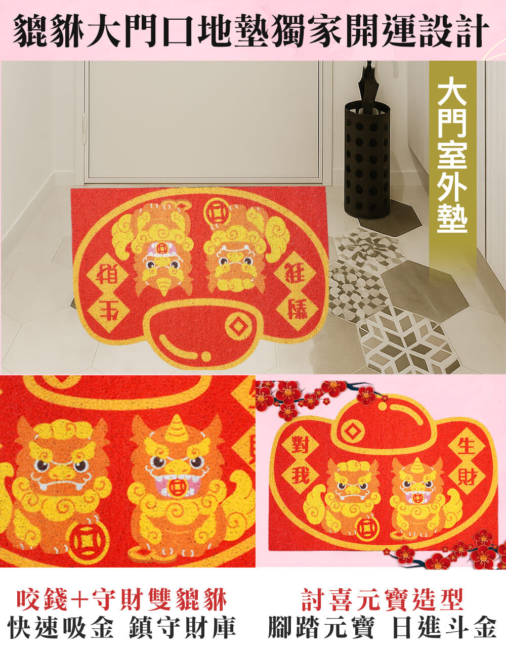 ♦喜慶絳紅室內外地墊,接引地氣引財入門