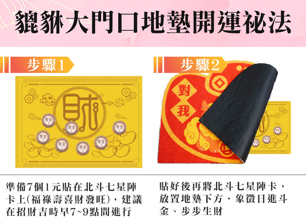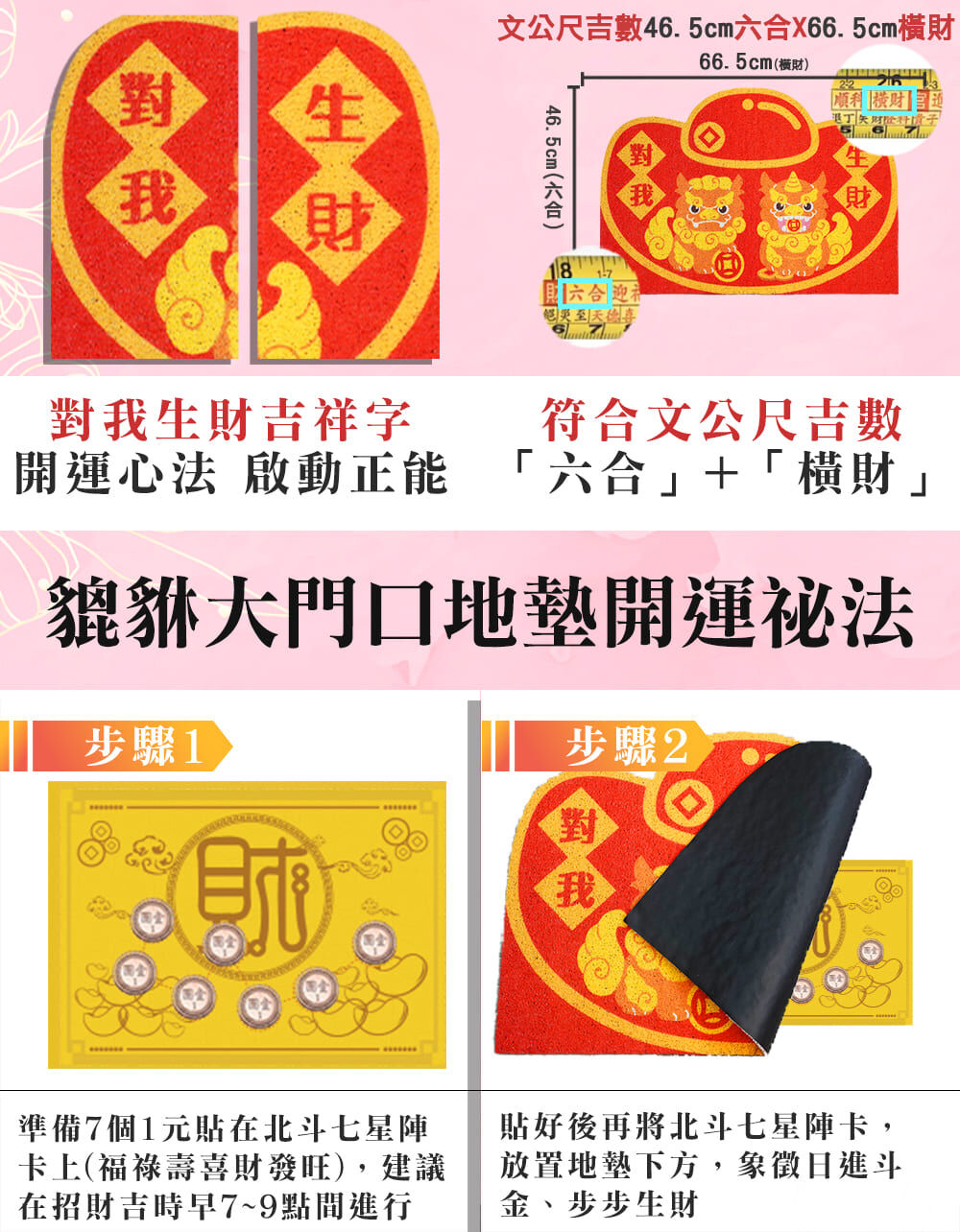 對我生財貔貅紅地墊x1入 PVC。長46.5cm*寬66.5cm。附贈財運七星陣卡。