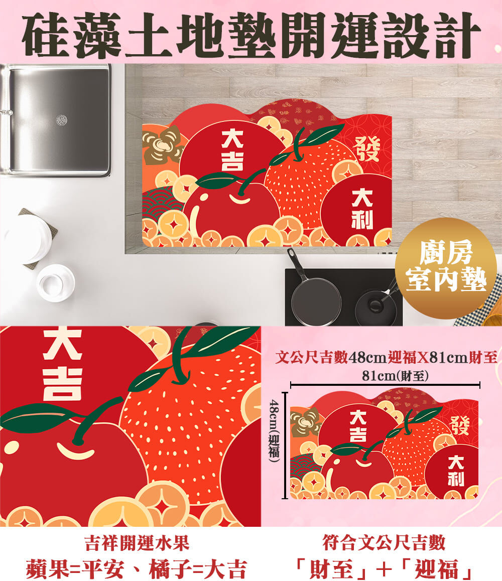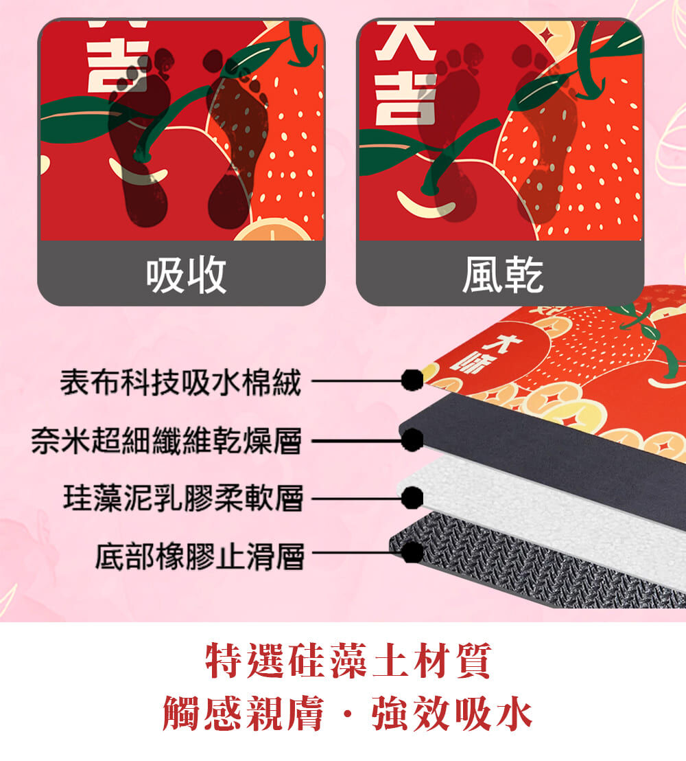 果然好運硅藻土地墊x1入 吸水科技布+仿棉絨+硅藻土橡膠軟墊。長81cm*寬48cm*厚度約4mm。