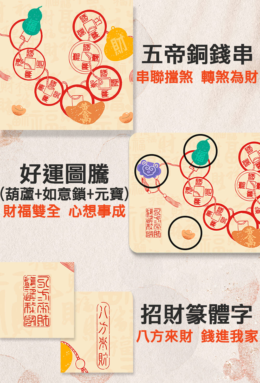 ◆五帝錢圖案-引帝王之氣、鎮宅擋煞