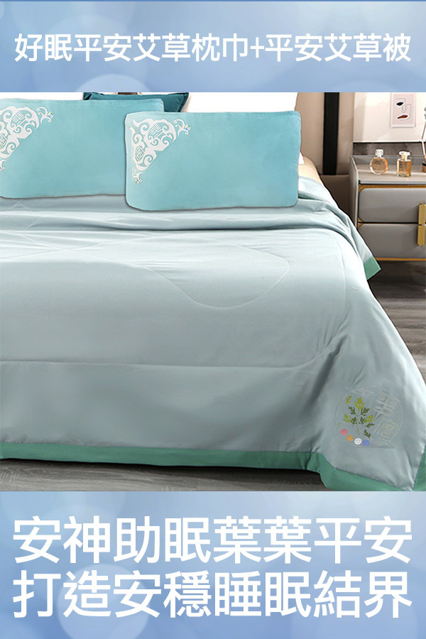 ◆艾草棉被+艾草枕巾-雙倍平安好眠組合
