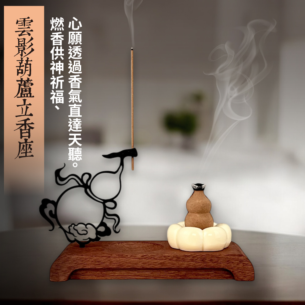 【命運好好玩】雲影葫蘆立香座+檀香富貴立香套組 (廠商直出、不參加免運及滿額贈優惠)