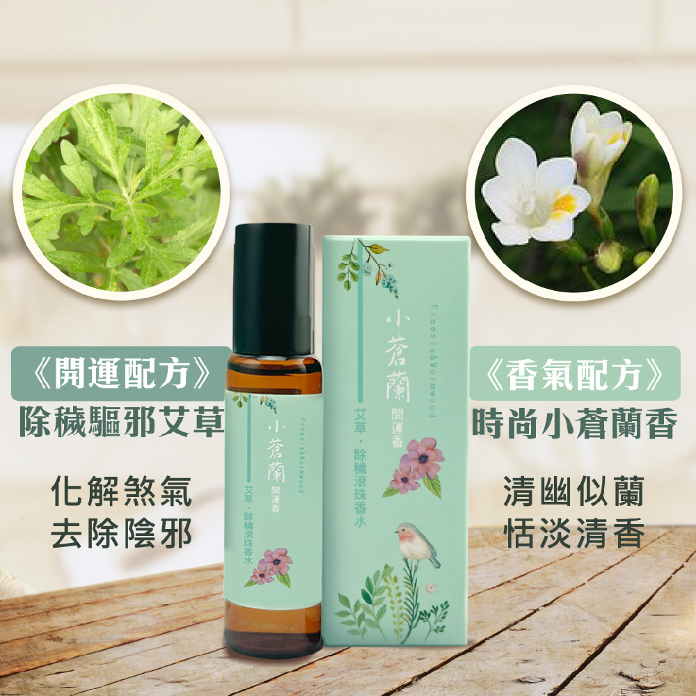 Ethanol、Parfum(小蒼蘭+艾草)。10ml。製造地:台灣
