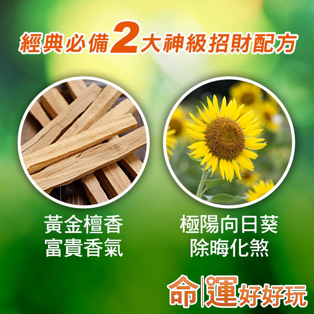 ◆ 質感檀木香氛,結合招財草本