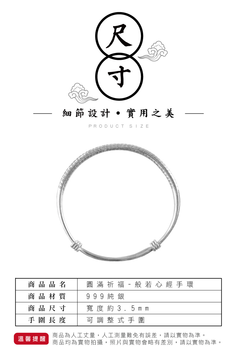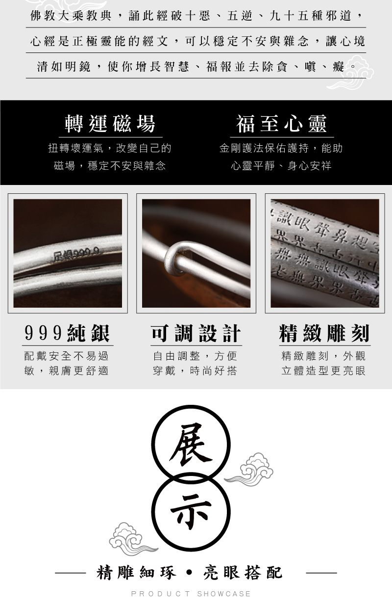 【財神小舖】圓滿祈福 - 般若心經手環 (999純銀) (含開光)