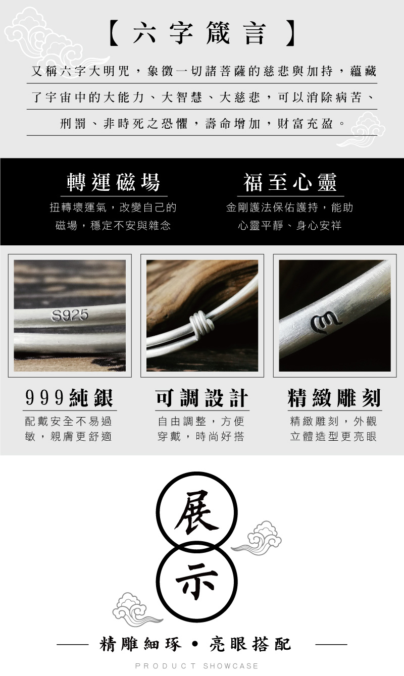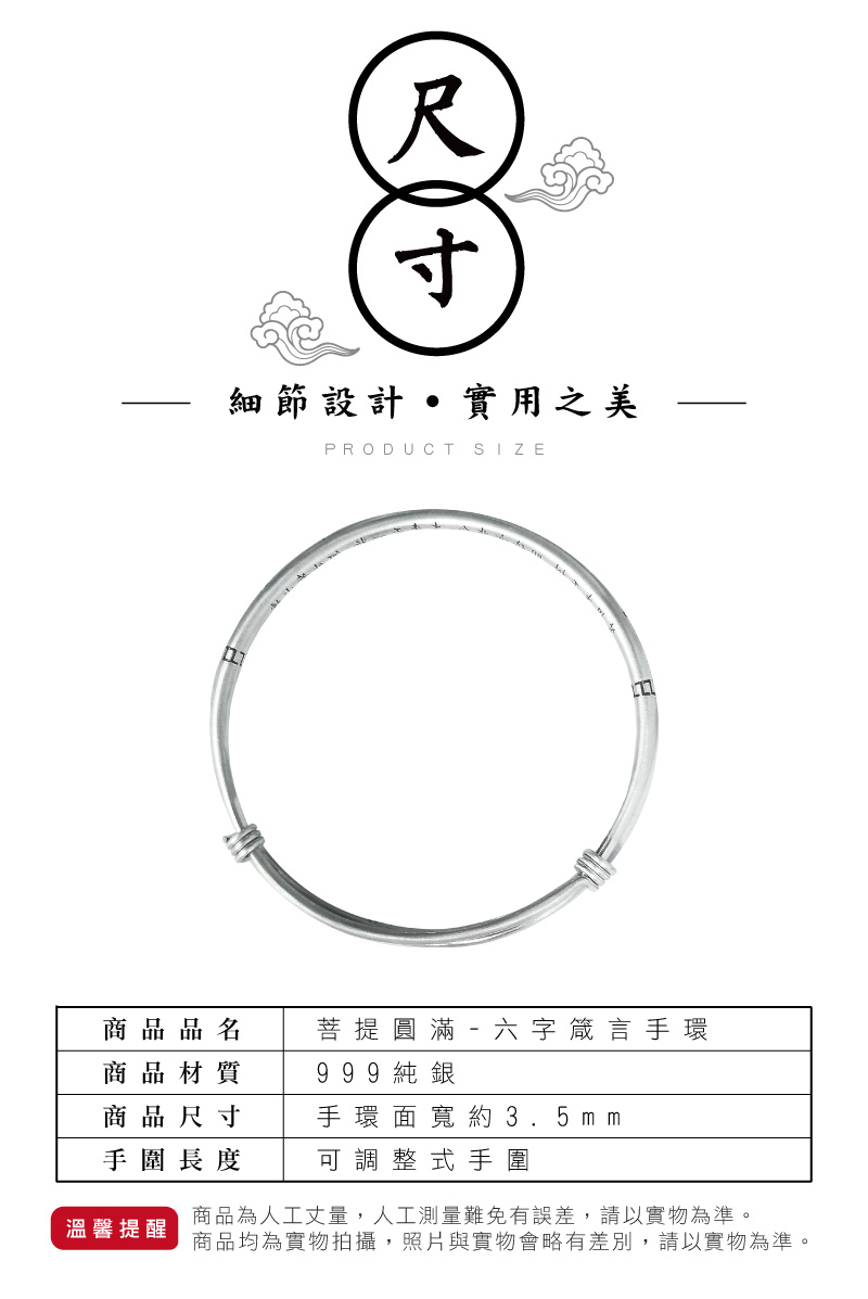 【財神小舖】菩提圓滿 - 六字箴言手環 (999純銀) (含開光)