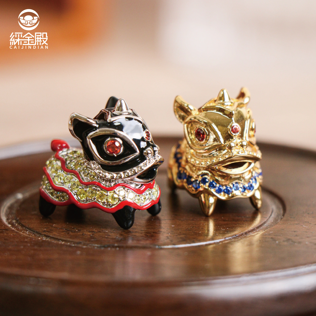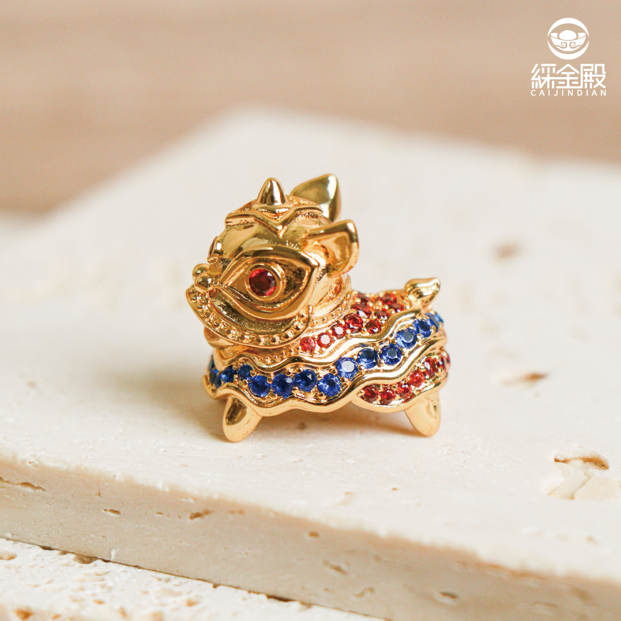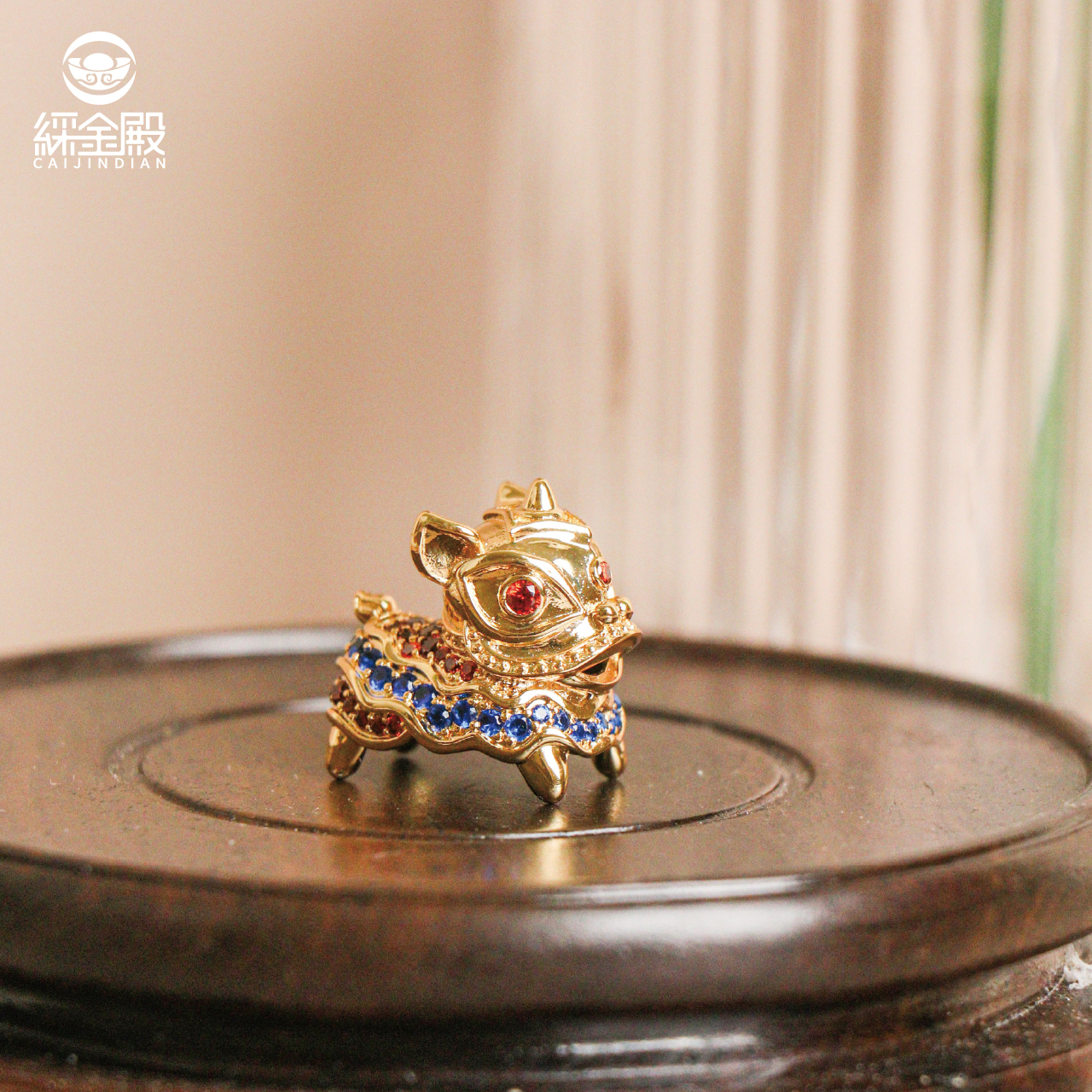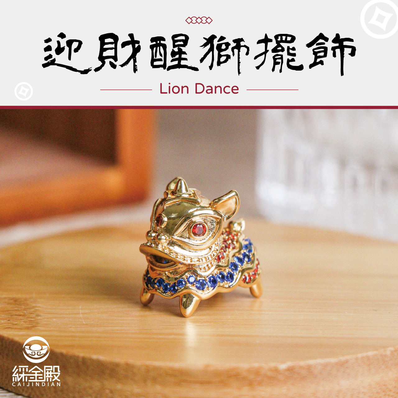 迎財醒獅擺飾-銅+黃K|擺件|舞獅|招財|吉祥物|鋯石【綵金殿】