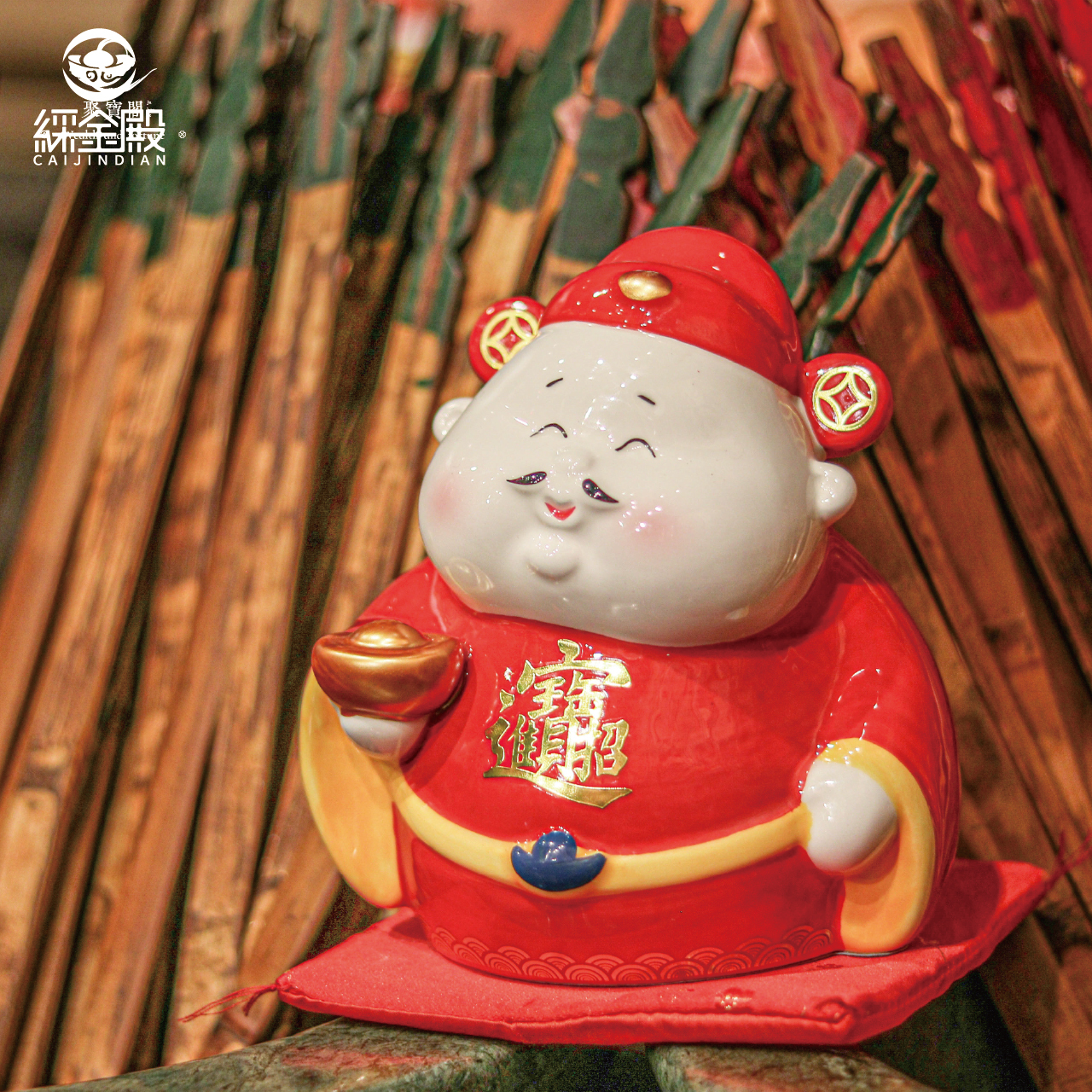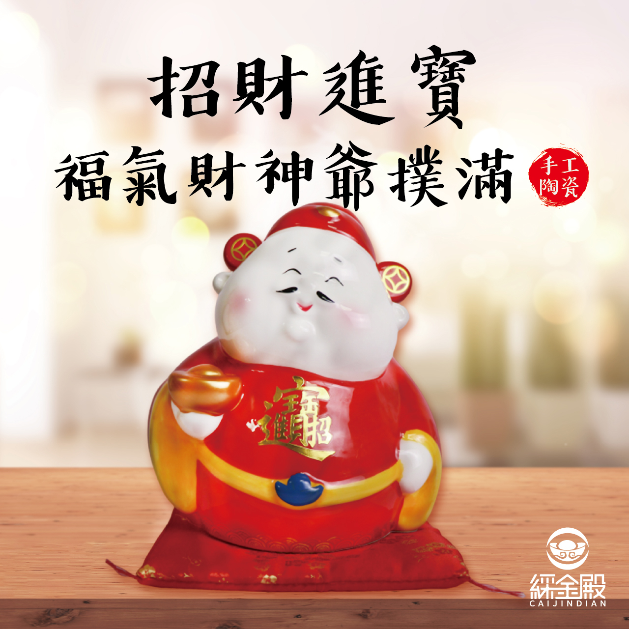 招財進寶-福氣財神爺撲滿|開運|財源滾滾|手工陶瓷|存錢筒|新年賀禮【綵金殿】