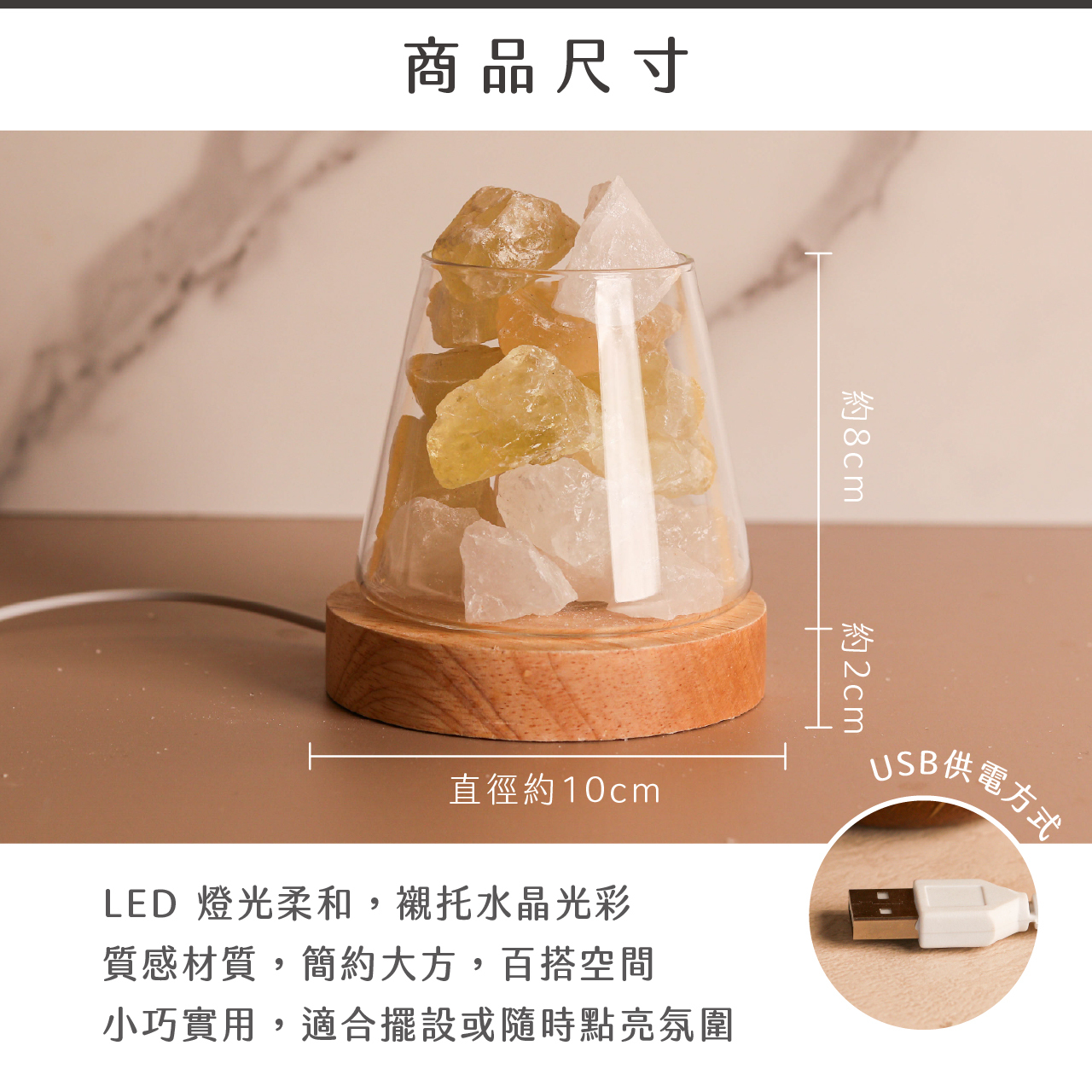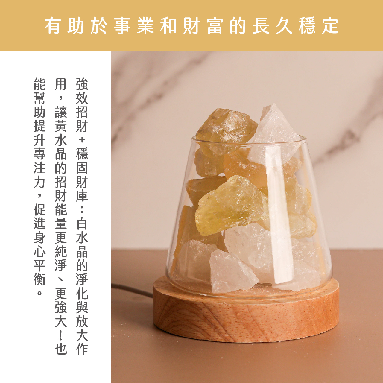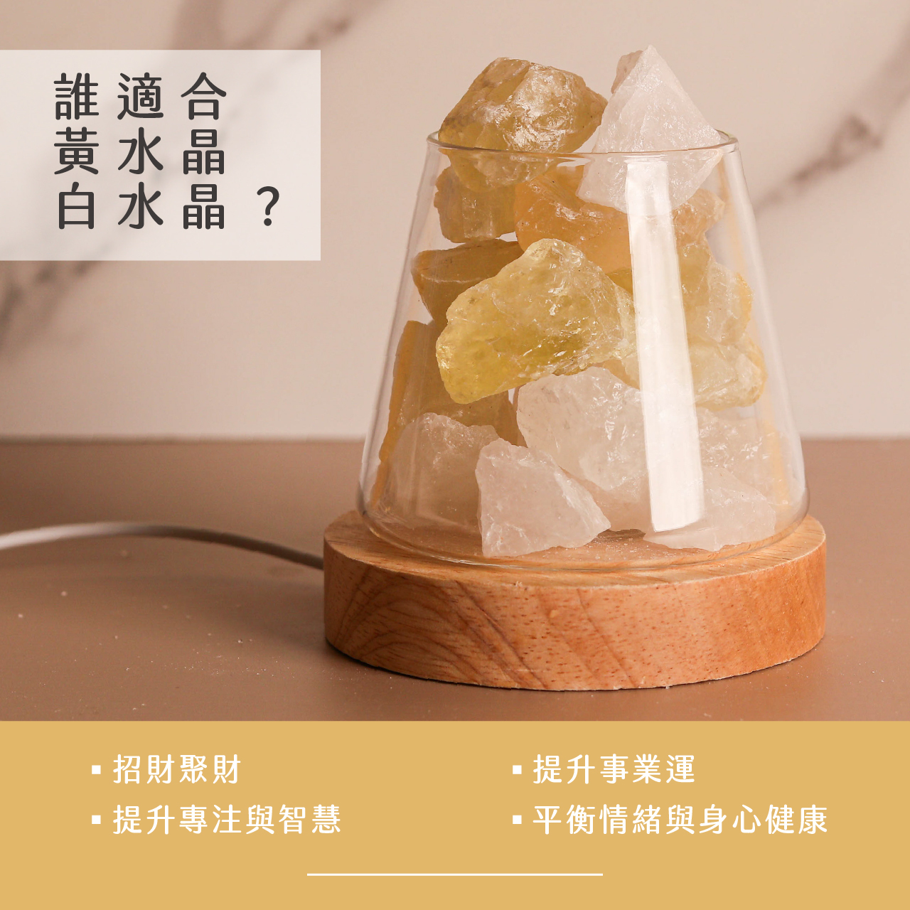 鹽燈-水晶療癒USB岩燈-黃水晶+白水晶|過爐加持|水晶|夜燈|平衡情緒|提升正|能量【綵金殿】