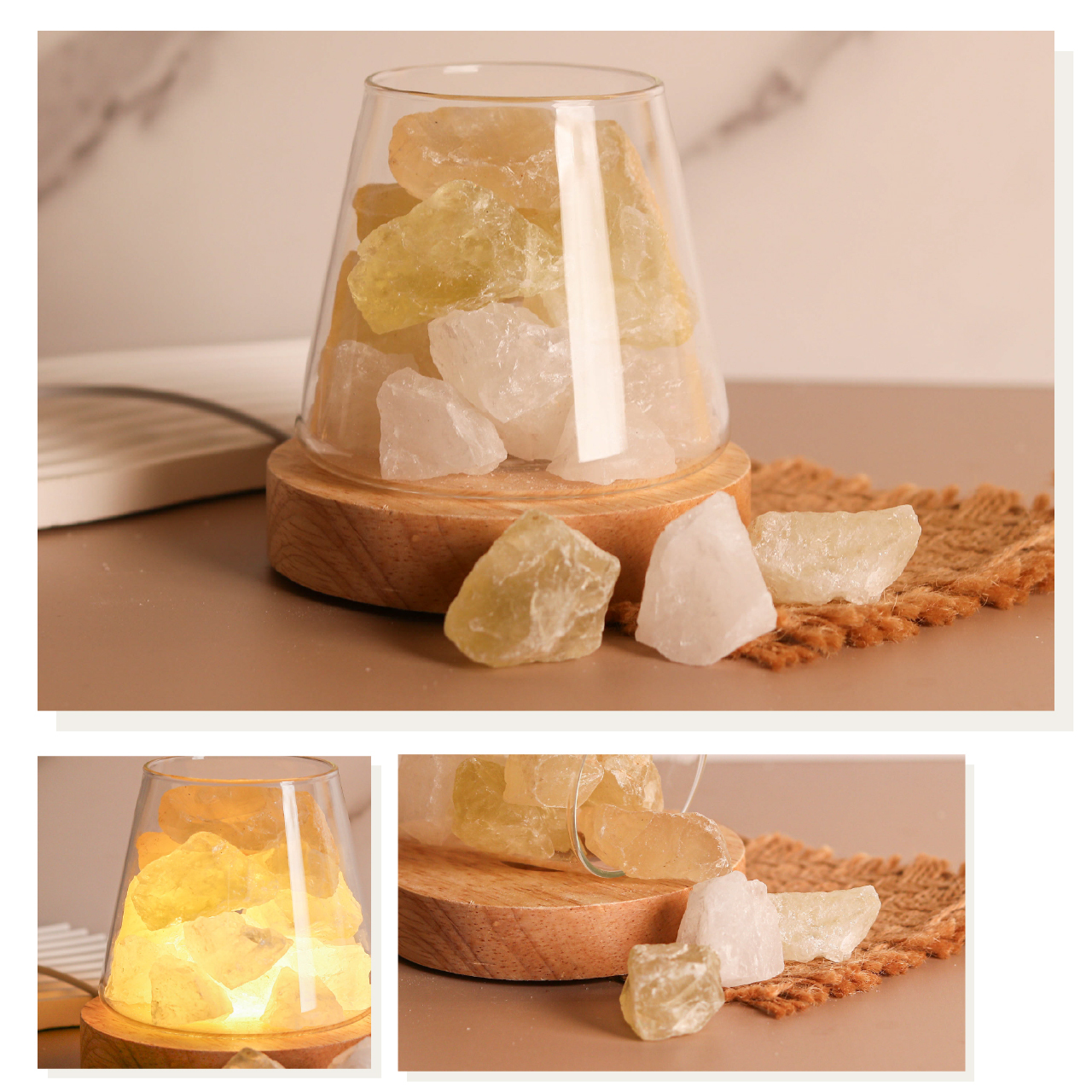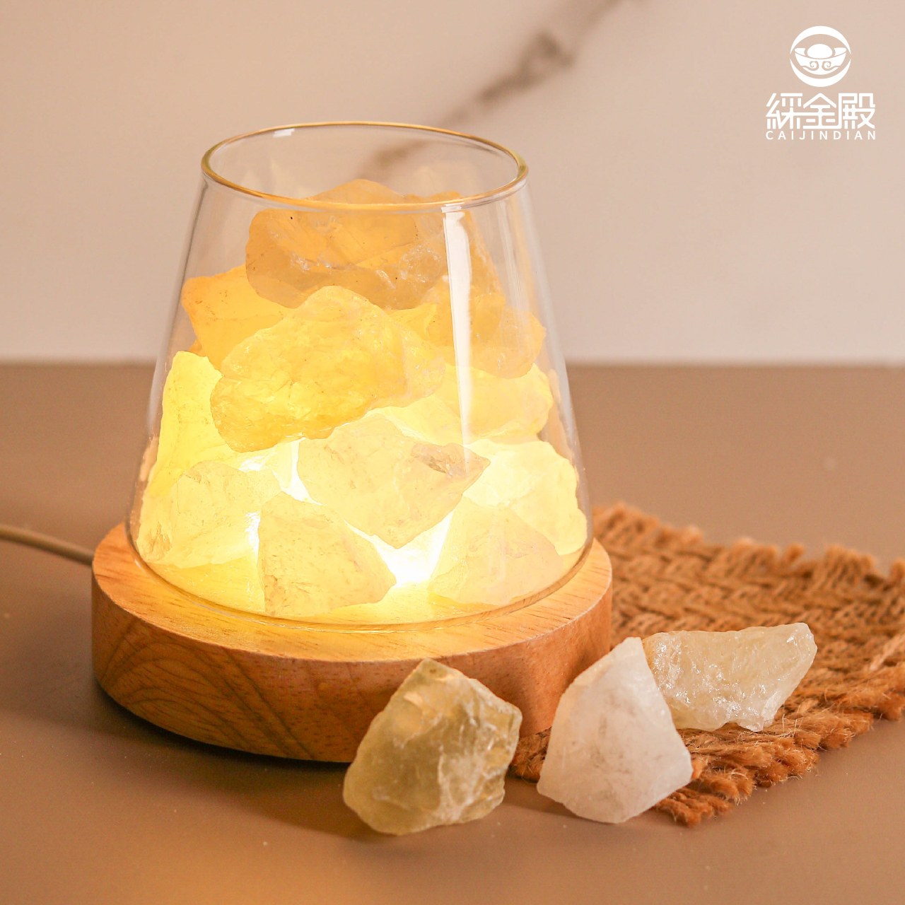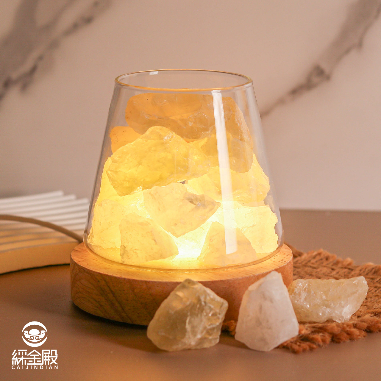 鹽燈-水晶療癒USB岩燈-黃水晶+白水晶|過爐加持|水晶|夜燈|平衡情緒|提升正|能量【綵金殿】