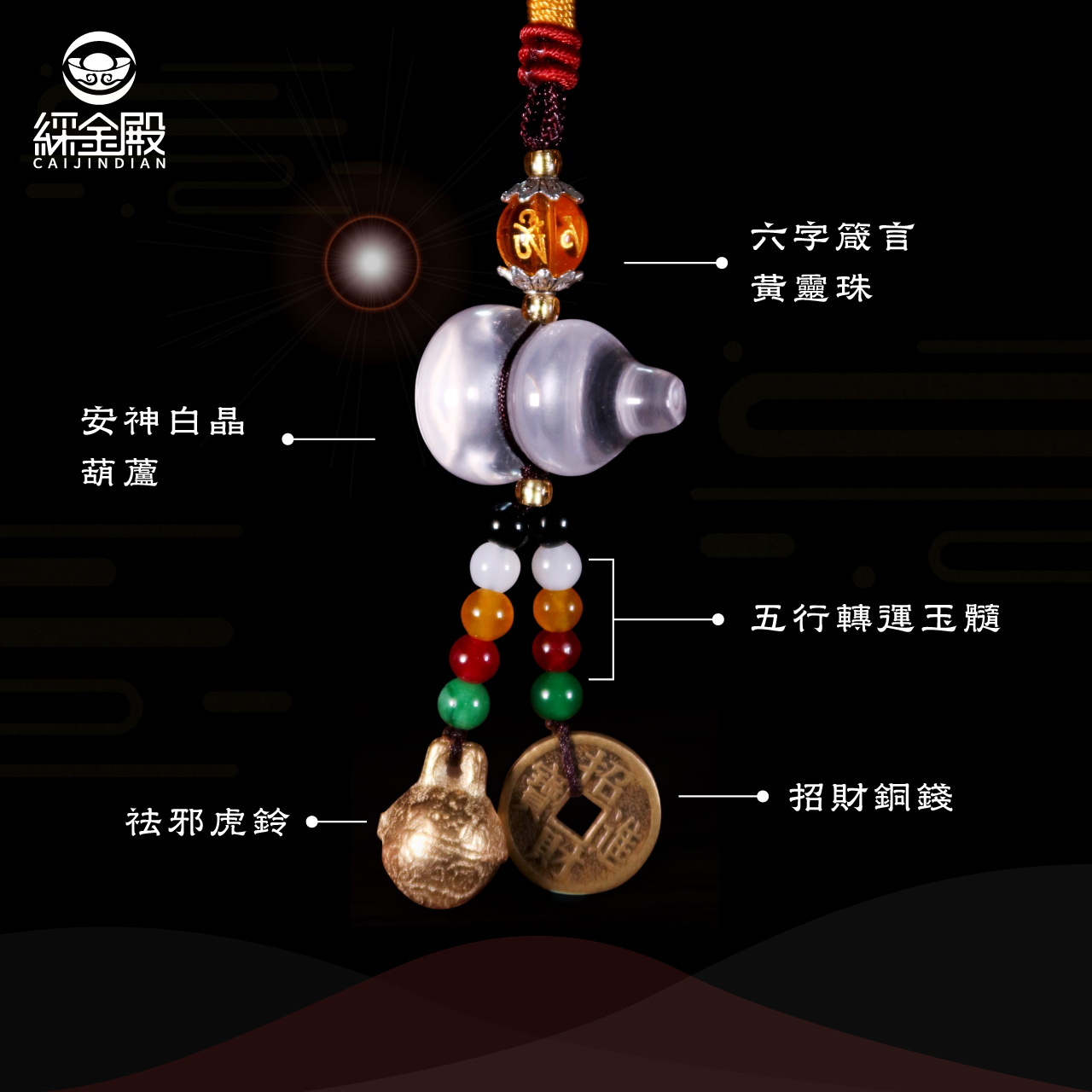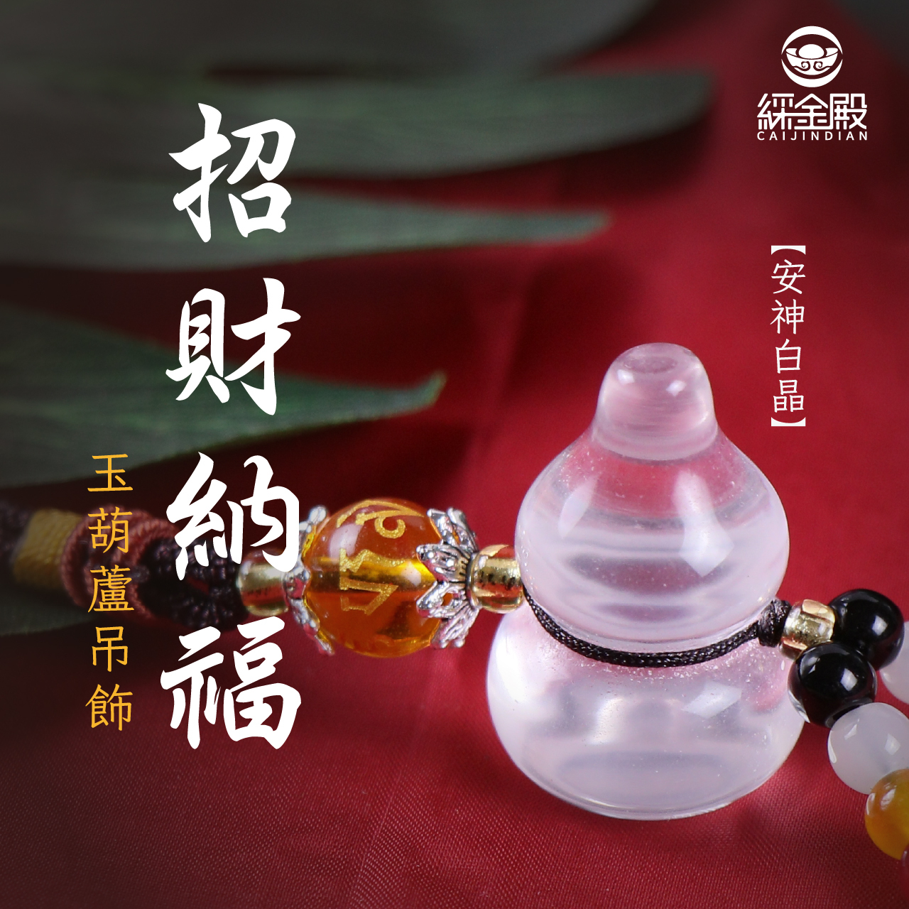 招財納福玉葫蘆吊飾-安神白晶|穩定情緒|淨化磁場|《含過爐》【綵金殿】