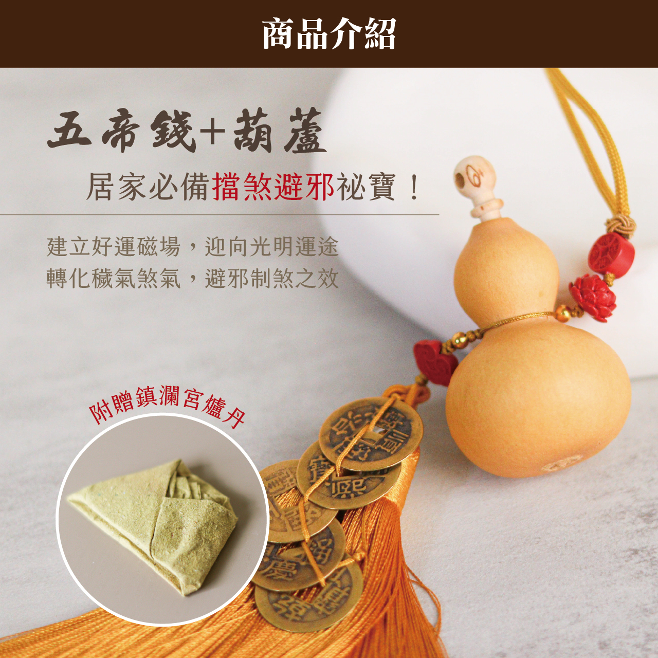 天賜福祿-天然葫蘆五帝錢吊飾|鎮宅|化煞|過爐加持|附爐丹【綵金殿】