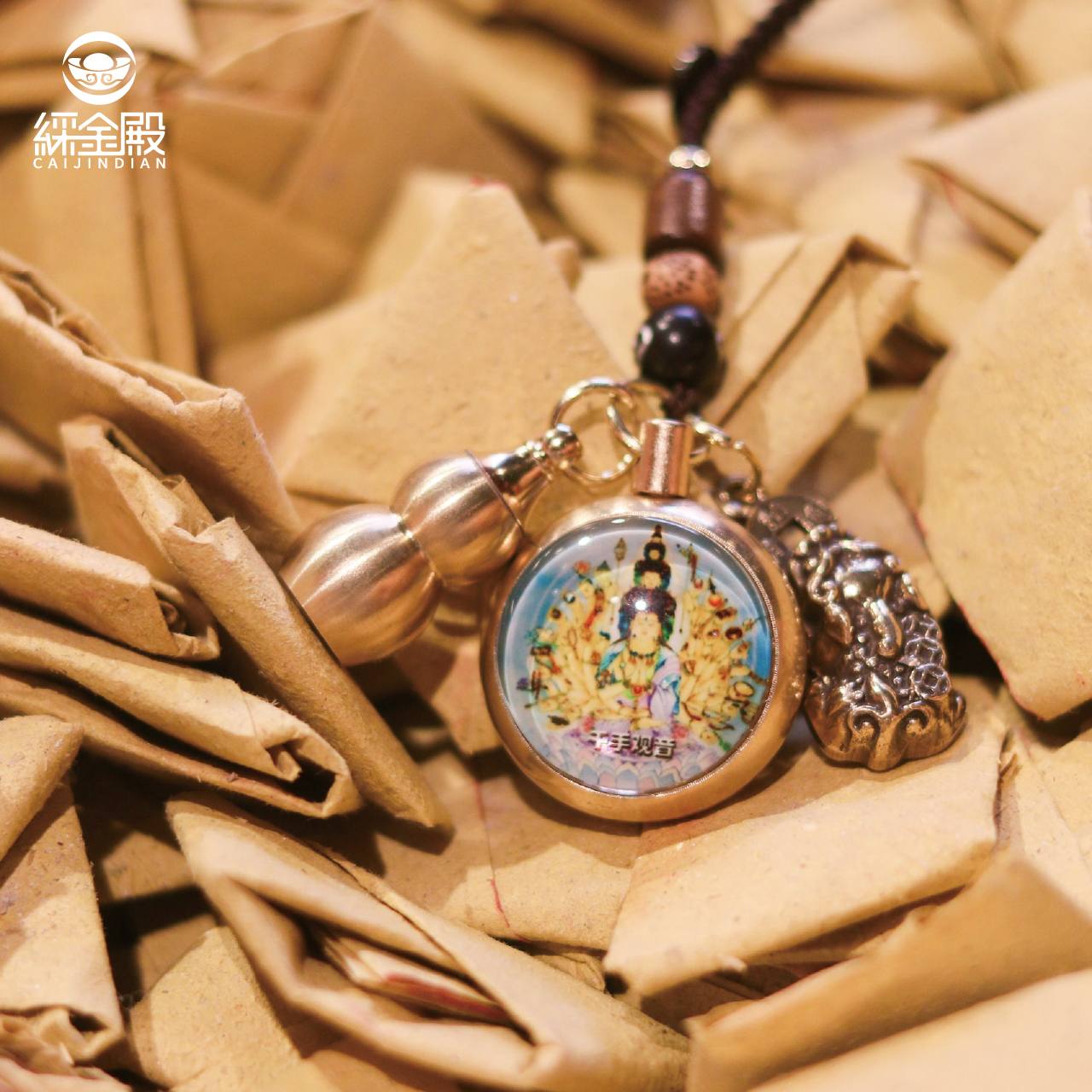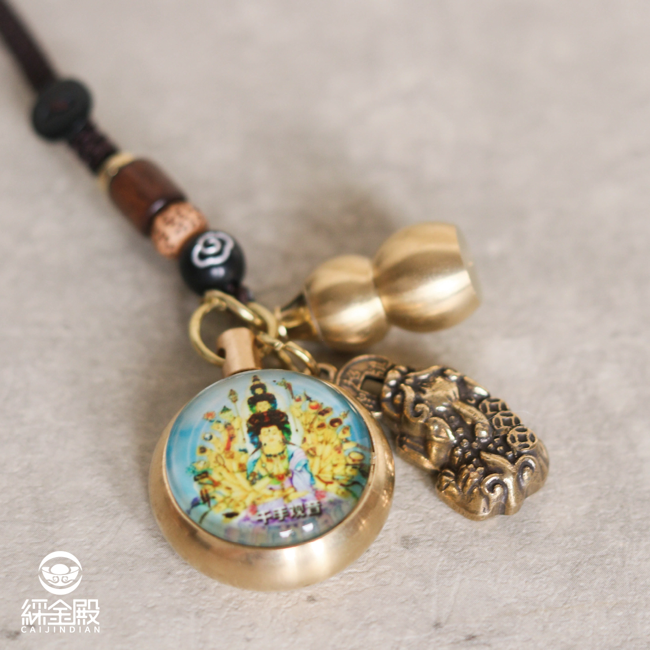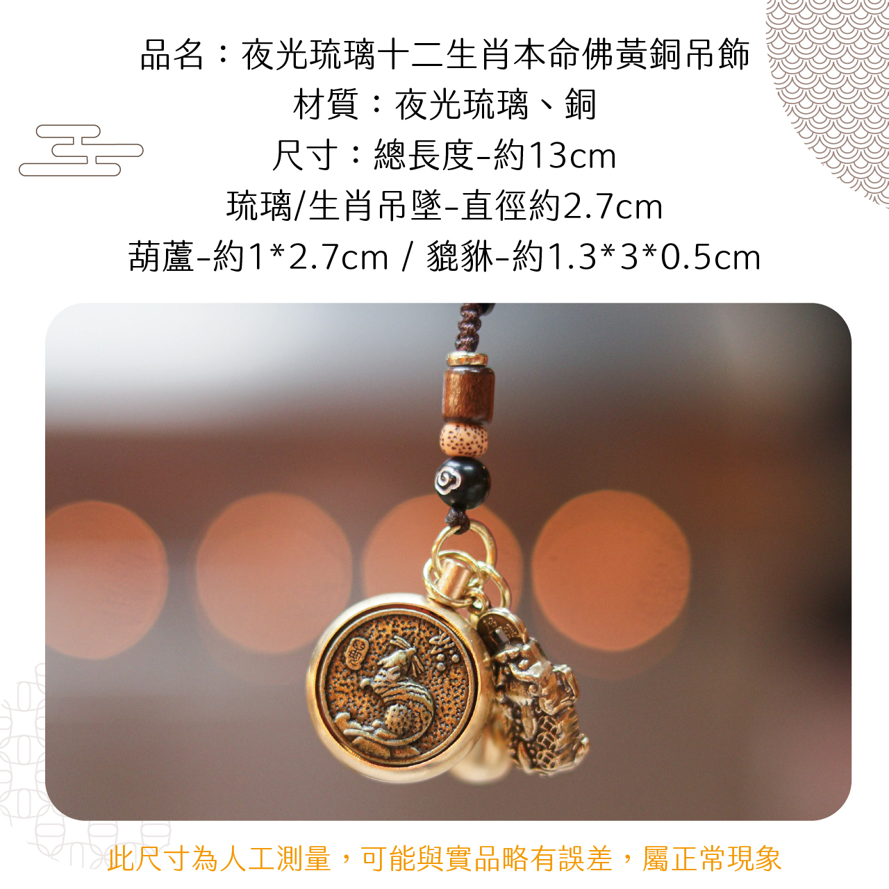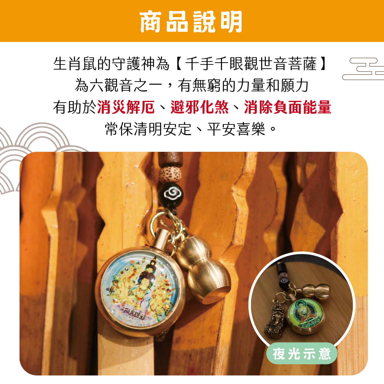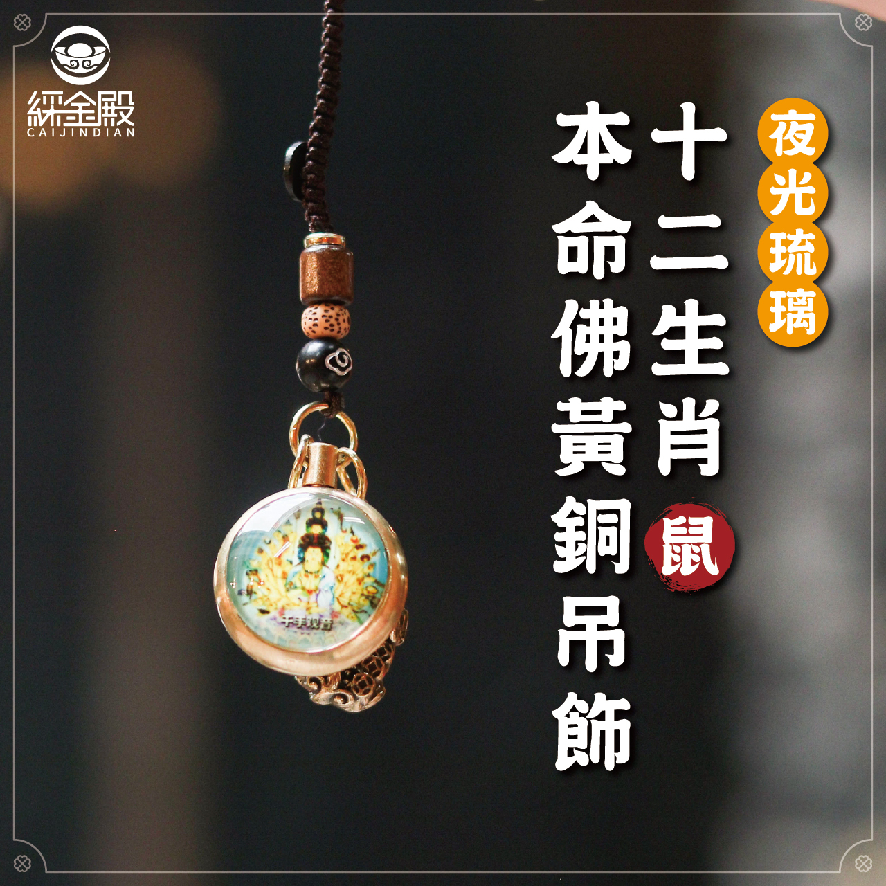 生肖鼠-夜光琉璃十二生肖本命佛黃銅吊飾|千手千眼觀世音菩薩|掛件|護身|生肖|轉運【綵金殿】