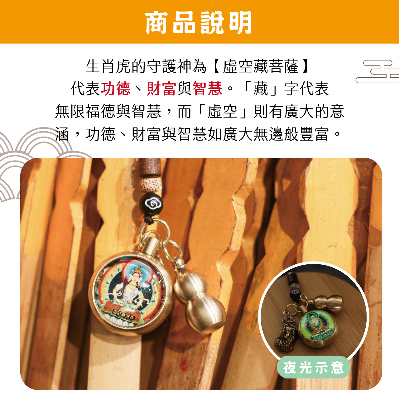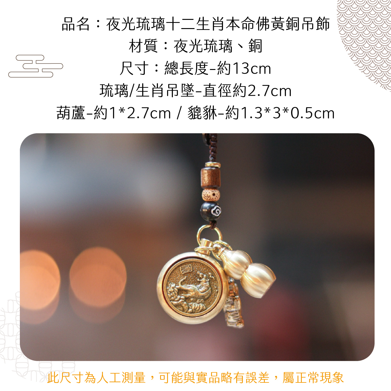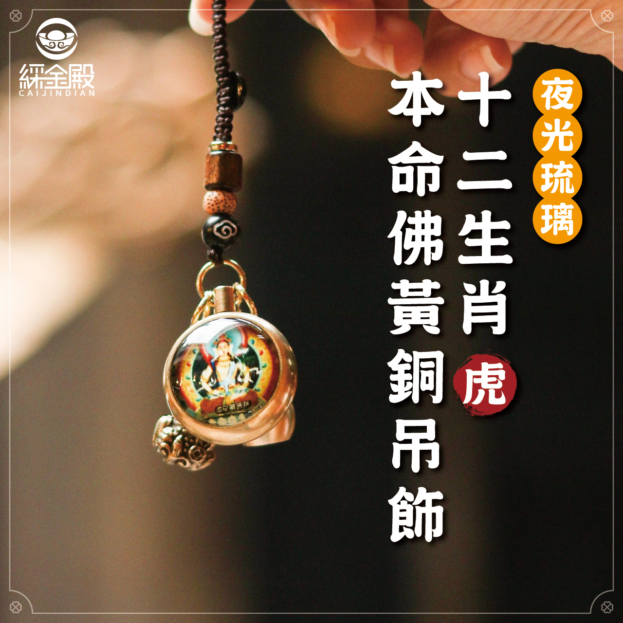 生肖虎-夜光琉璃十二生肖本命佛黃銅吊飾|虛空藏菩薩|掛件|護身|生肖|轉運【綵金殿】