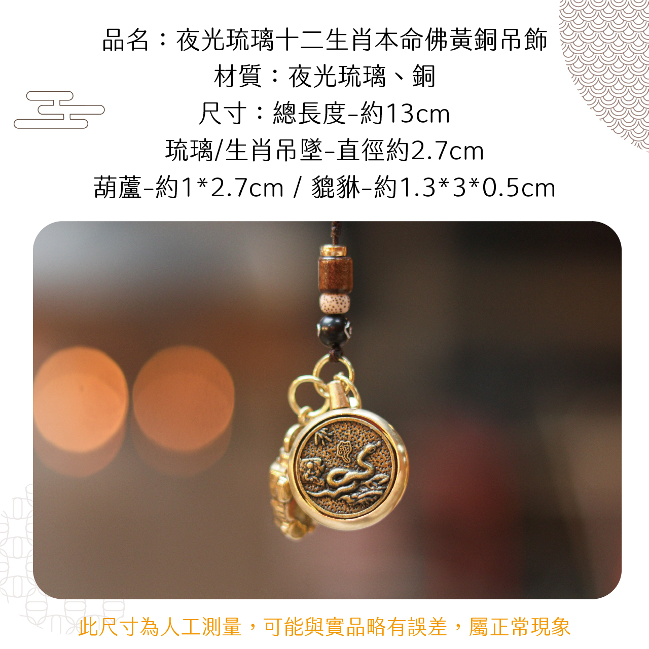 生肖蛇-夜光琉璃十二生肖本命佛黃銅吊飾|普賢菩薩|掛件|護身|生肖|轉運【綵金殿】