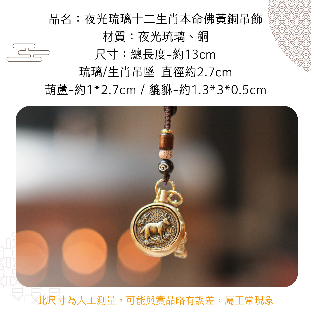生肖羊-夜光琉璃十二生肖本命佛黃銅吊飾|大日如來|掛件|護身|生肖|轉運【綵金殿】