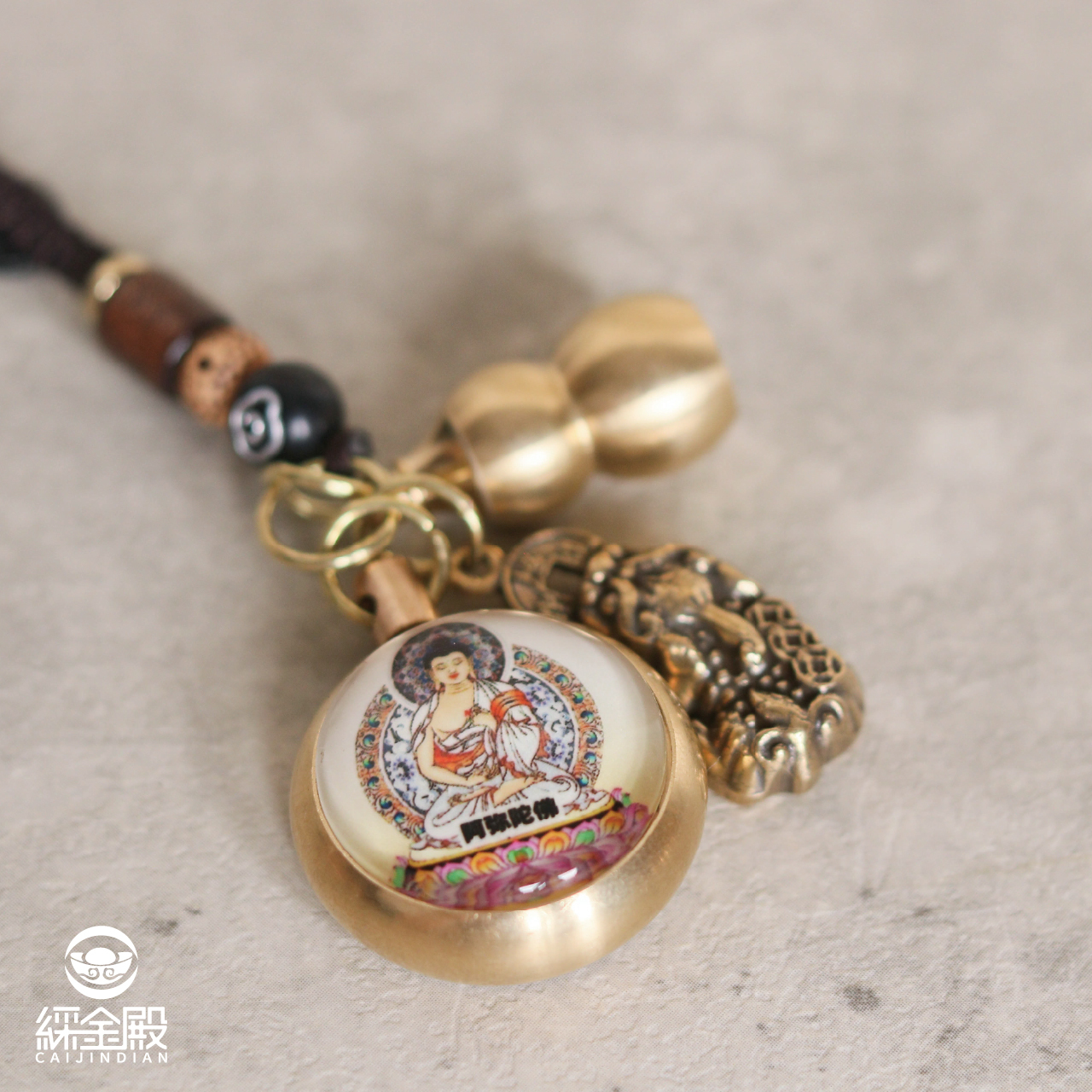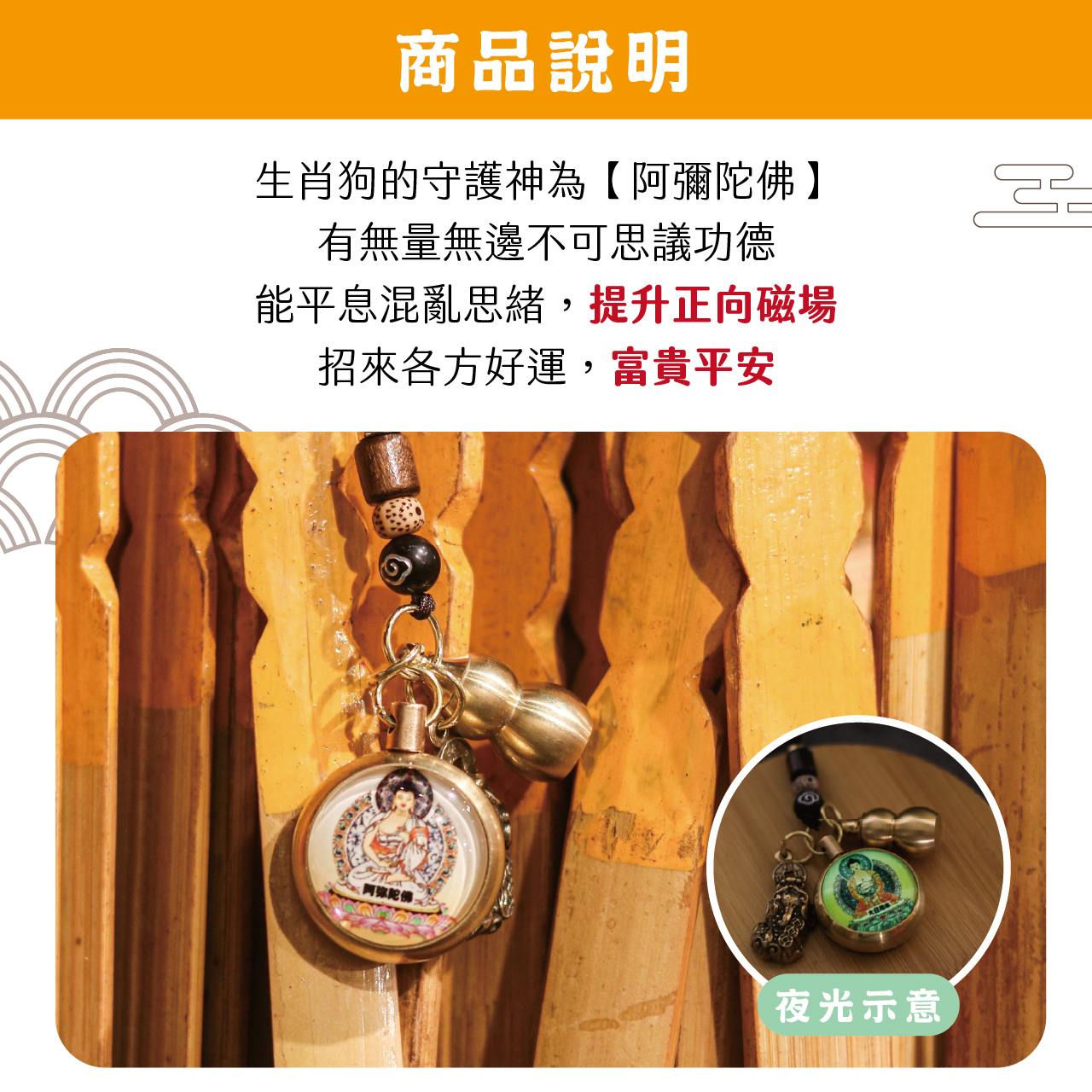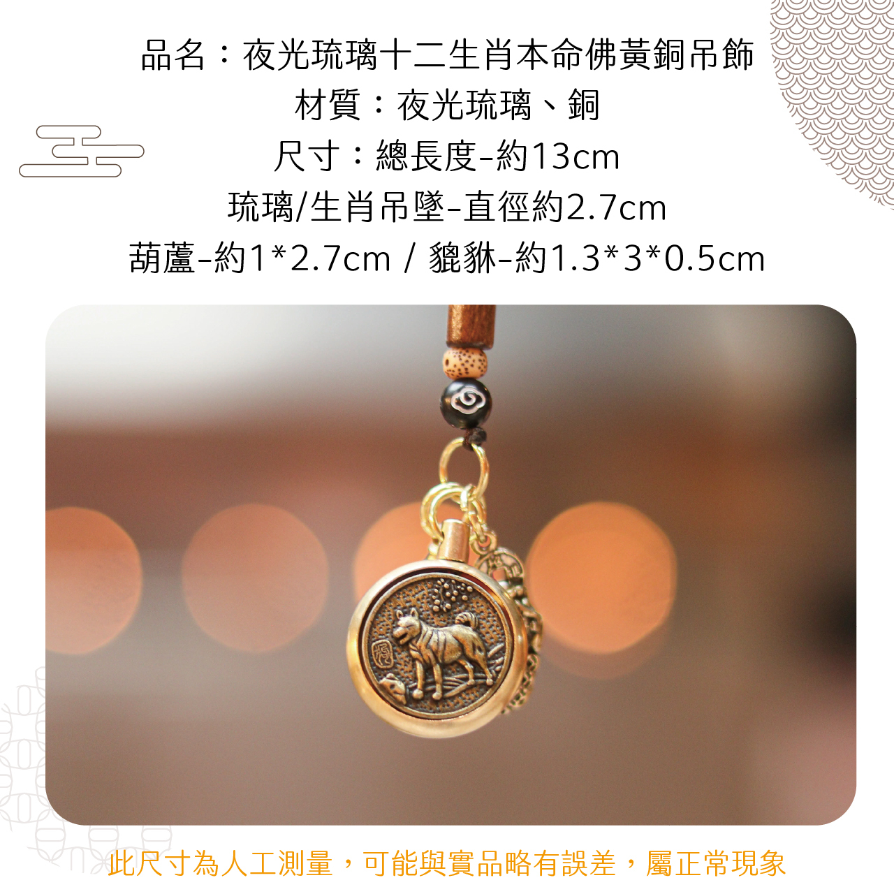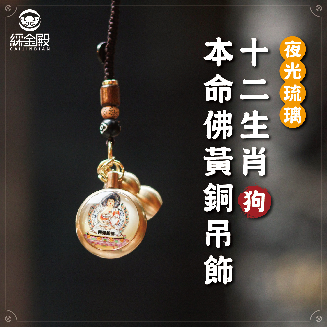生肖狗-夜光琉璃十二生肖本命佛黃銅吊飾|阿彌陀佛|掛件|護身|生肖|轉運【綵金殿】